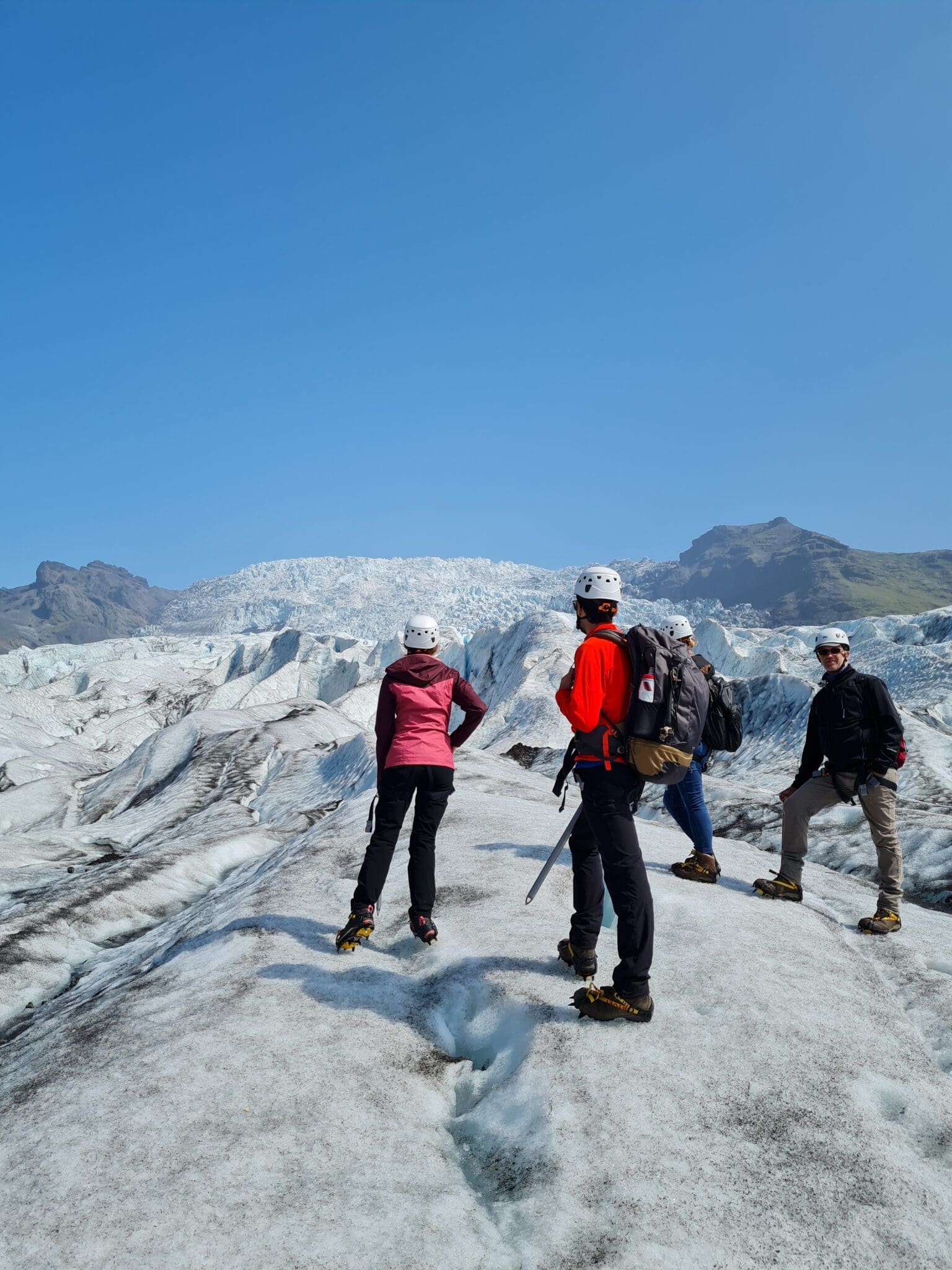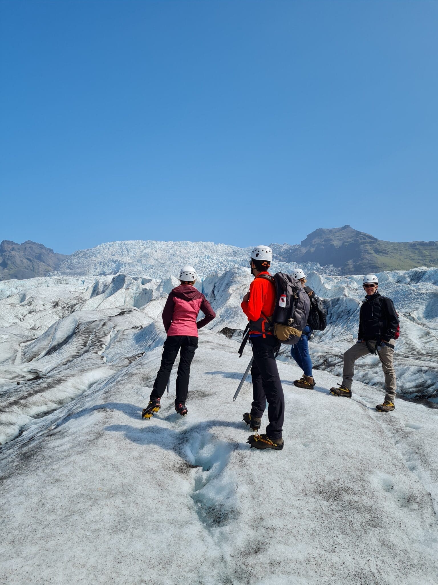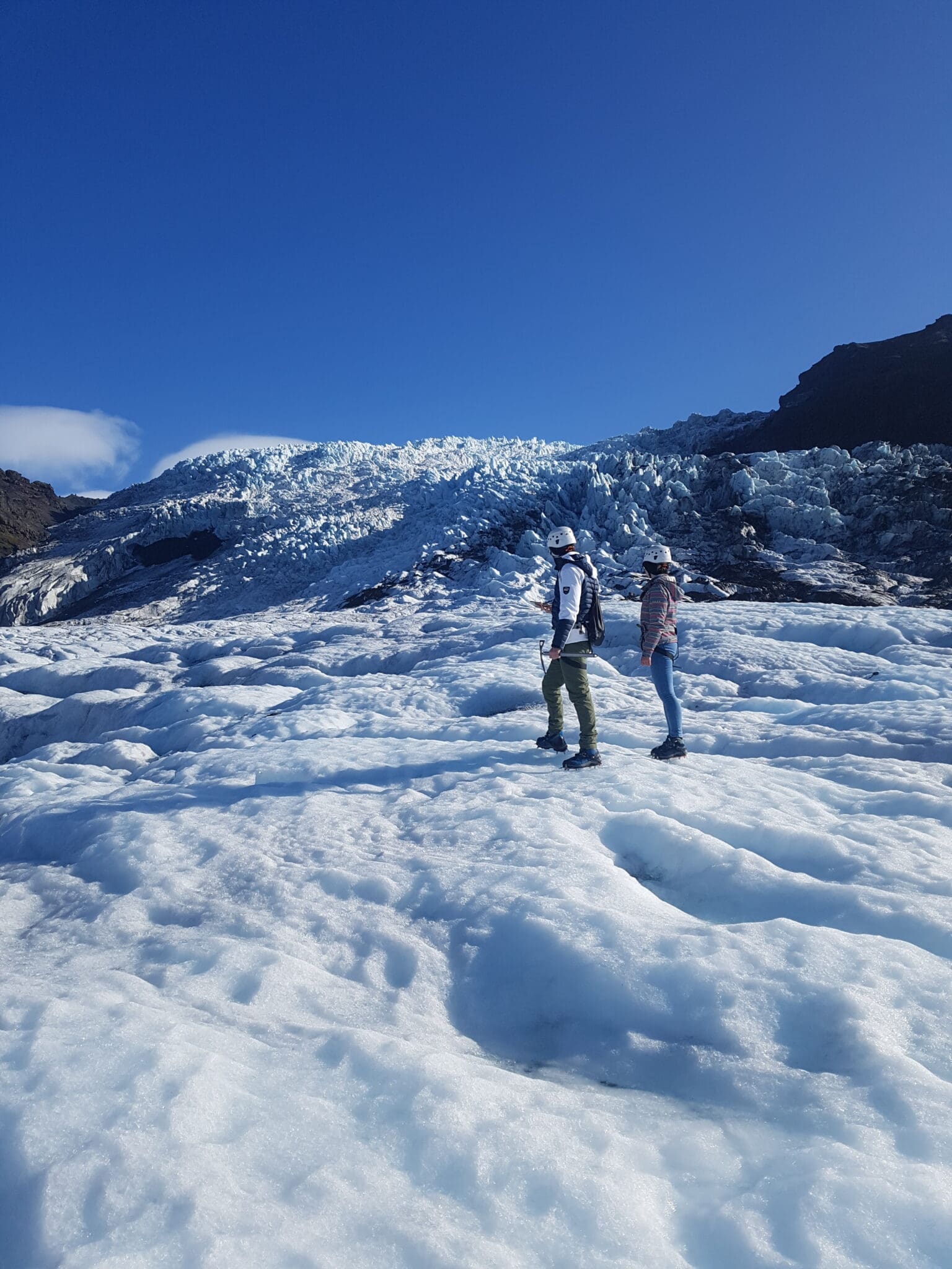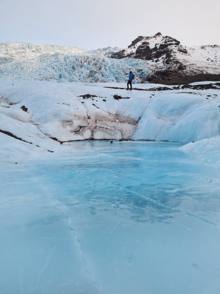 If you have never seen a glacier before and you would like to experience these stunning ice giants a little bit closer, come to the breathtaking area of Skaftafell. Skaftafell is located in Vatnajökull national park, the filming location of movies like Batman Begins, Interstellar and the Game of Thrones series. To maximize the time spent on ice, we drive all the way to the terminus of Falljökull glacier in our 4×4 truck. Before you step on to the ice you will learn the proper way to put on and use the provided glacier gear. We aim to spend around one and a half hour on the ice, exploring moulins, crevasses and more other-wordly formations. Along the way your guide will share ineresting facts about these formations and the origins of the glacier as well as interesting local stories.