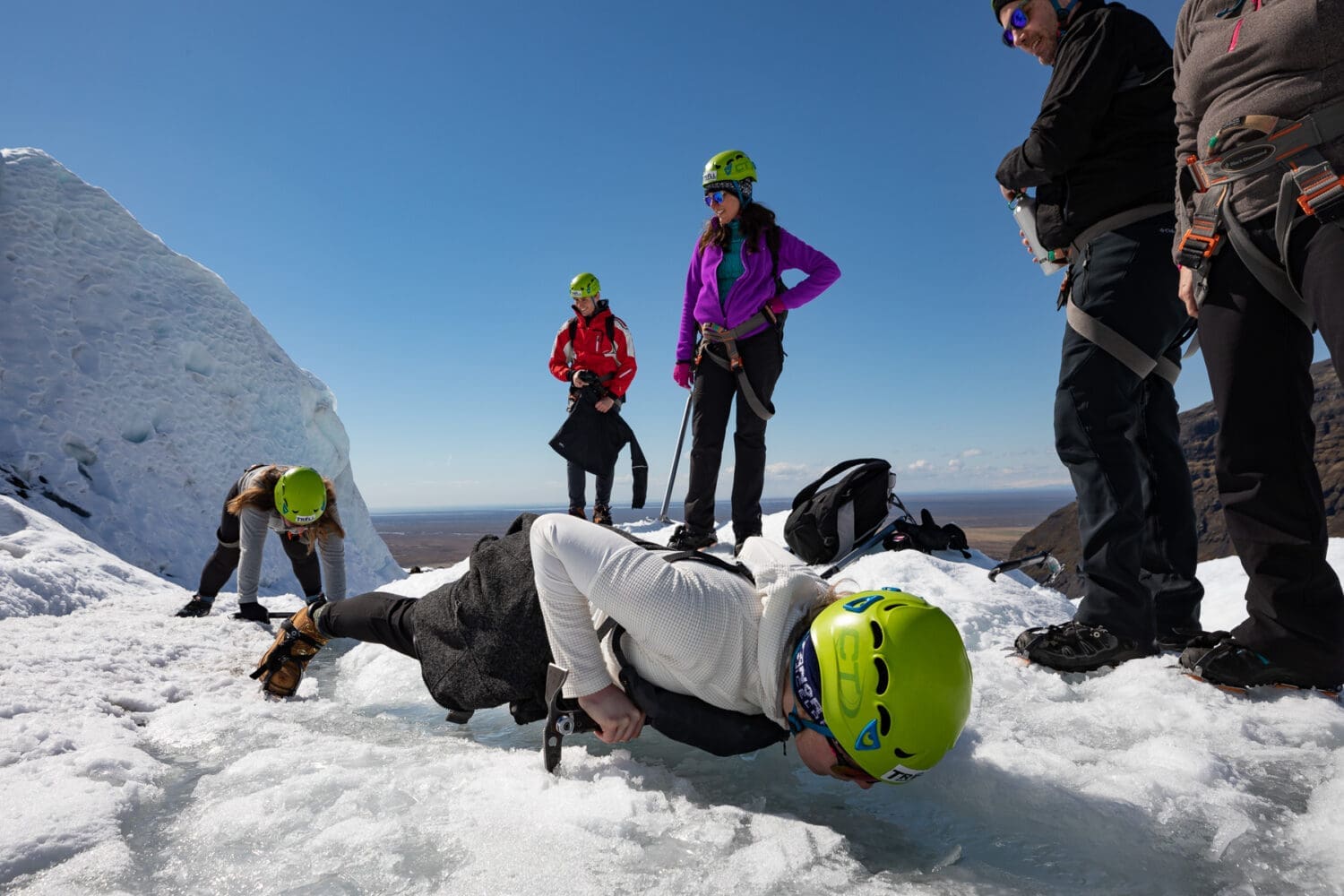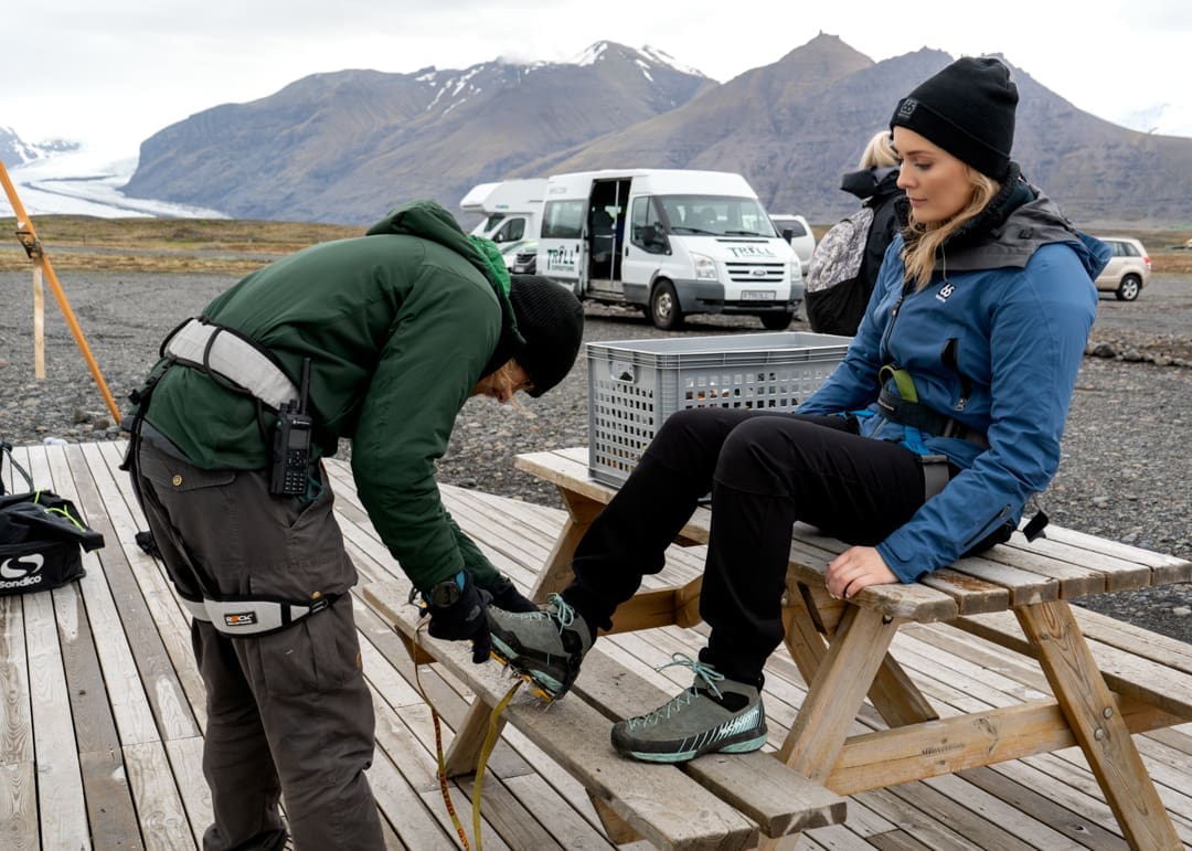 On this comprehensive glacier tour, you’ll learn the basics of glacier hiking and rope work, and your guide will teach you all you want to know about the massive natural phenomena on which you’ll be climbing. You will be provided with all the necessary equipment and get to exercise beforehand in a comfortable and safe environment. This tour is for anyone seeking to experience one of the natural wonders of the world. You’ll meet your guide in the Troll Expeditions Skaftafell, park your car there, and we will drive for 10 minutes on our big Shuttle bus to the glacier tongue area.