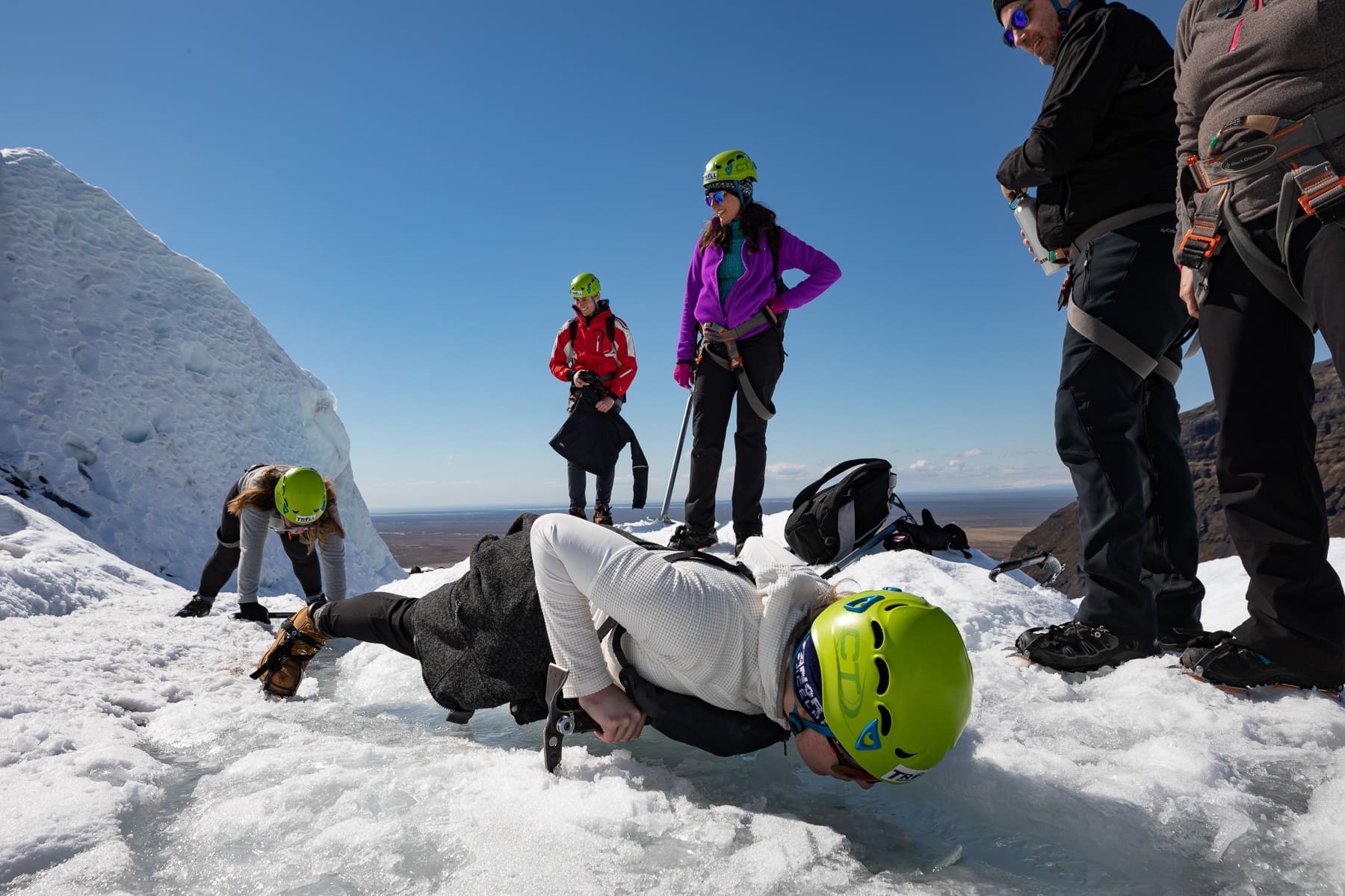 Grab your hiking boots and get ready, because you’re going on an expedition onto Falljökull glacier in Skaftafell, Iceland. On this comprehensive glacier tour, you'll learn the basics of glacier hiking and rope work, and your guide will teach you all you want to know about the massive natural phenomena on which you'll be hiking. You will be provided with all the necessary equipment and get to exercise beforehand in a comfortable and safe environment. This tour is for anyone seeking to experience one of the natural wonders of the world. You’ll meet your guide at our Troll expeditions Skaftafell meeting point in Hof, and a short 15-minute drive takes you to the tip of the glacier tongue. Falljökull is part of Skaftafell, the highest mountain range in Iceland. The country's highest peak, Hvannadalshnjúkur, marks the very top of this glacial giant which in recent times leapt into fame after starring in movies and TV shows, such as Game of Thrones and Oblivion. Once you reach the icecap, you’ll have plenty of time to marvel at the glacier and take in the lonesome howl of the frosty wilderness that gives you and your fellow hikers the feeling of being alone in a vast, empty world of ice and snow; you’ll view massive blocks of millennia-old ice, created when oxygen bubbles are trapped in the snow and compressed by the enormous weight of the glacier; you’ll be able to gaze deep into a glacier moulin, a vertical shaft that can go all the way to the bottom of the glacier, and on a clear day, you'll see Hvannadalshnjúkur and the vast glacier sand expanses that are said to be the largest in the world. Don’t miss out on this opportunity to witness the lunar ice formations and crevasses of Falljökull glacier.