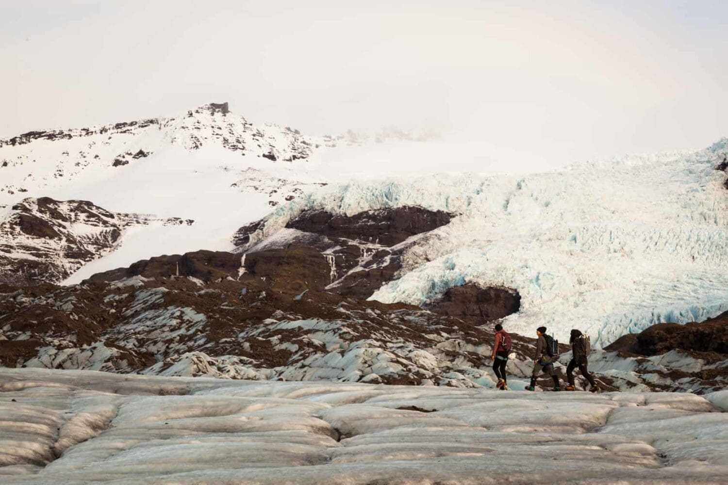 This tour starts from Skaftafell Terminal Tour Center where we give you all of the required glacier gear. After a short drive through the beautiful landscape that Öræfi has to offer, we reach the edge of Falljökull and Virkisjökull outlet glaciers.