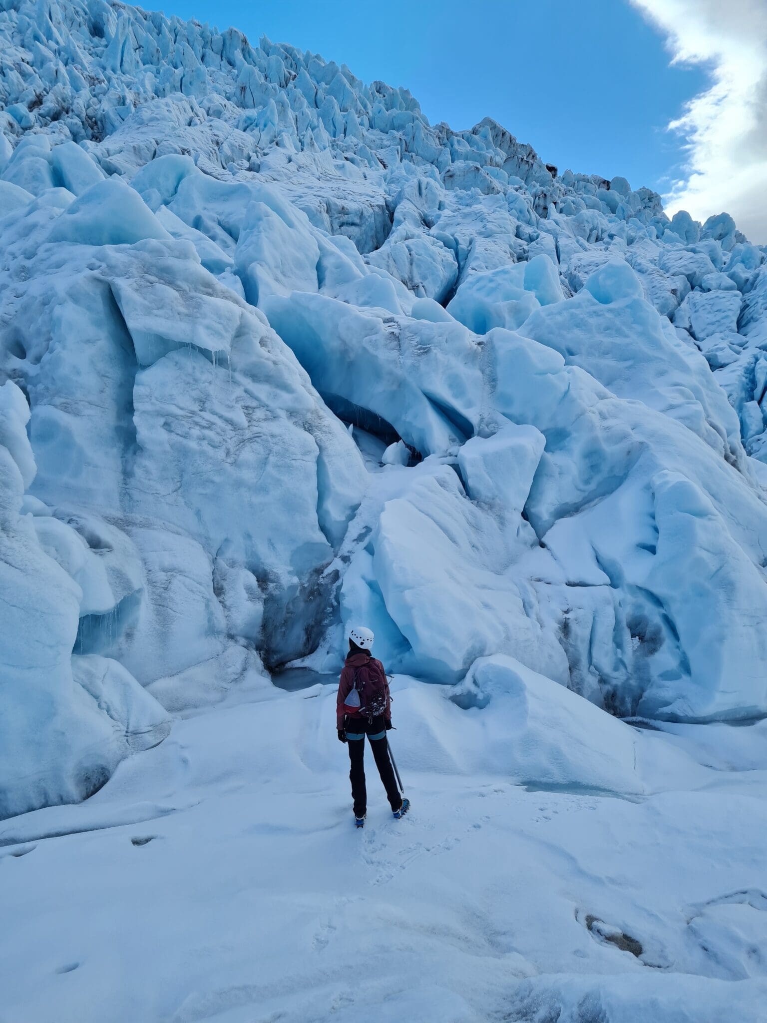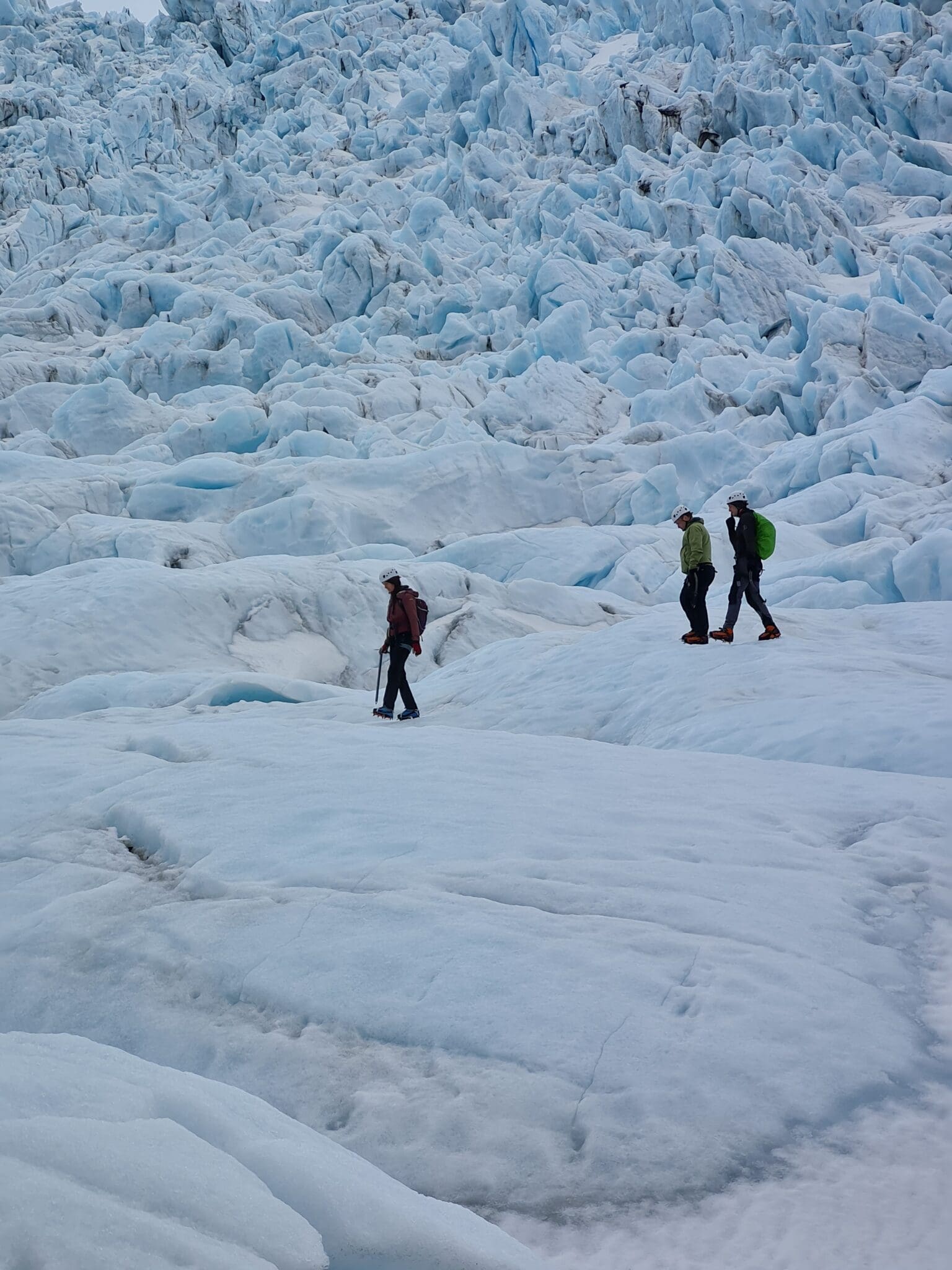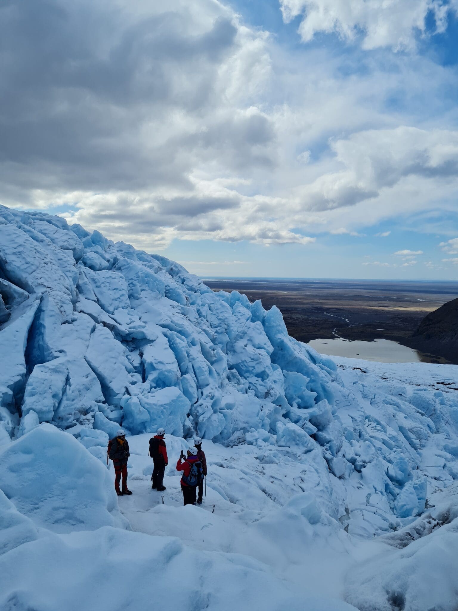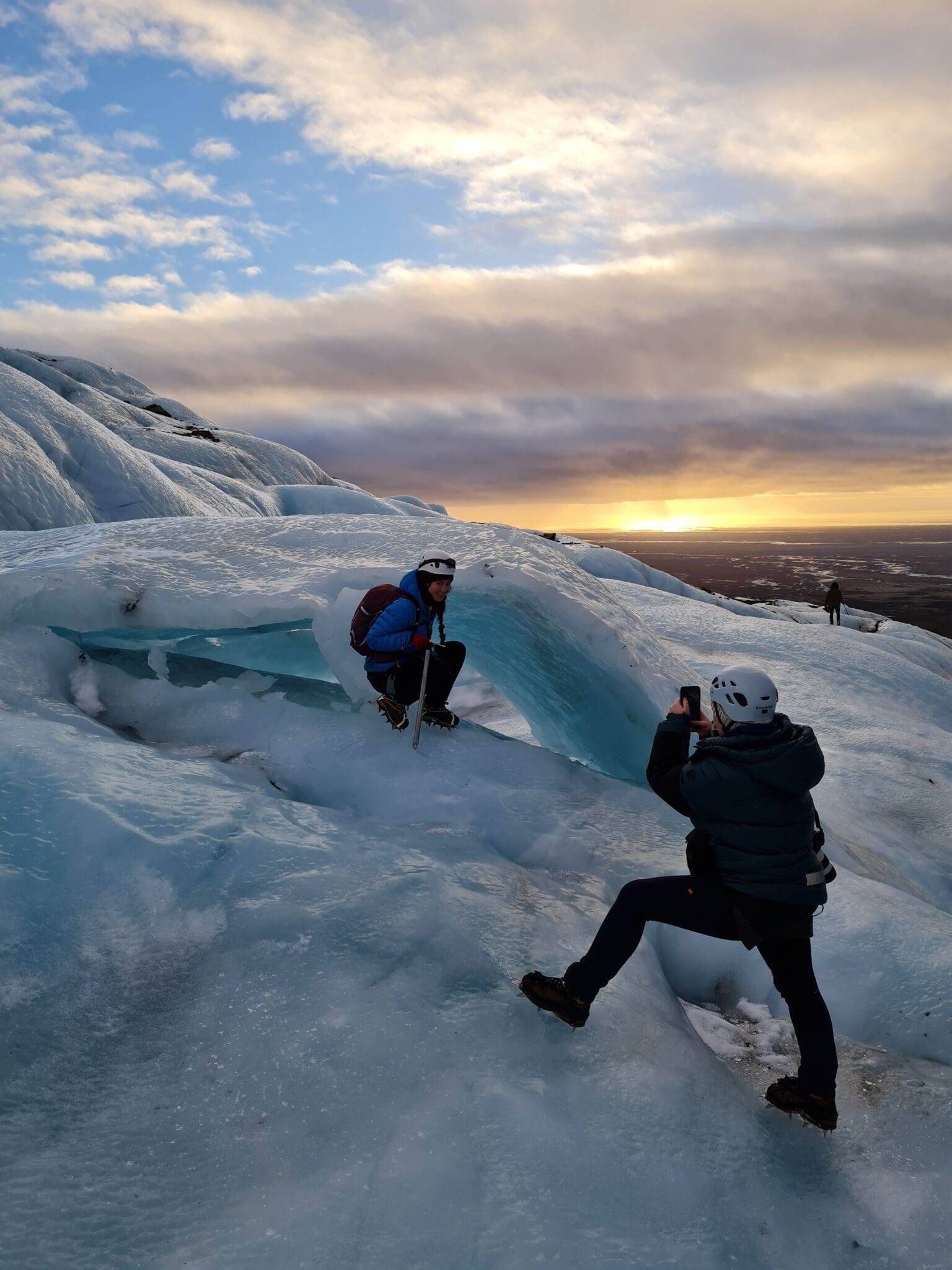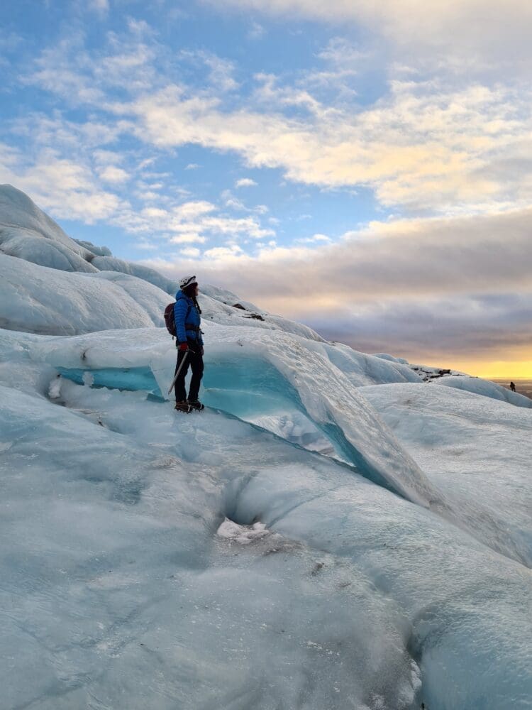 If you want to hike further into the glacier than most of the other tours do. If you are hoping to get close to the ice fall of Falljökull, outlet glacier of Vatnajökull (the largest glacier in Europe). If you wish to have a breathtaking view over the crevasses. Then this is tour is made for you! We will drive you all the way to the glacier in our 4×4 truck, teach you how to put on crampons, how to use an ice axe and then we will guide you through the labyrinth of crevasses, moulins and water streams of the glacier. We are not gonna rush our way to the ice fall, so you will have time to get used to walking on the crampons. We will do many stops on the way to explain all about how glaciers are formed, about their history and also a little bit about the area of Skaftafell and Öræfi. Of course the guide will assist you with taking many photos from this adventure.