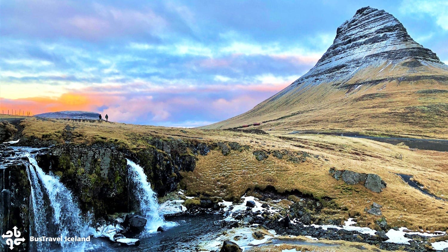 On our Small group Snæfellsnes tour we offer you an intimate and personal guidance maximising your experience on the peninsula. Búðir Black Church, the seals at Ytri Tunga, Berserkjahraun lava fields, Mt. Kirkjufell and Kirkjufell waterfalls, Djúpalónssandur black basalt beach, Lóndrangar pinnacles, Snæfellsjökull glacier and Arnarstapi Harbor are amongst the places of interest you will enjoy with us on the tour.
