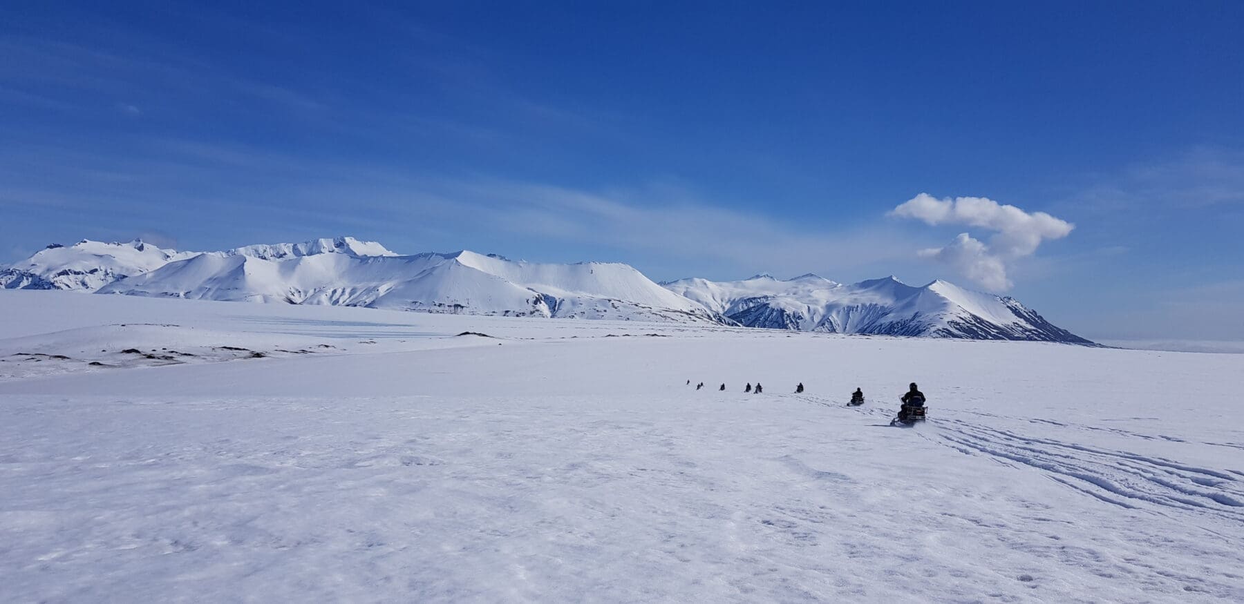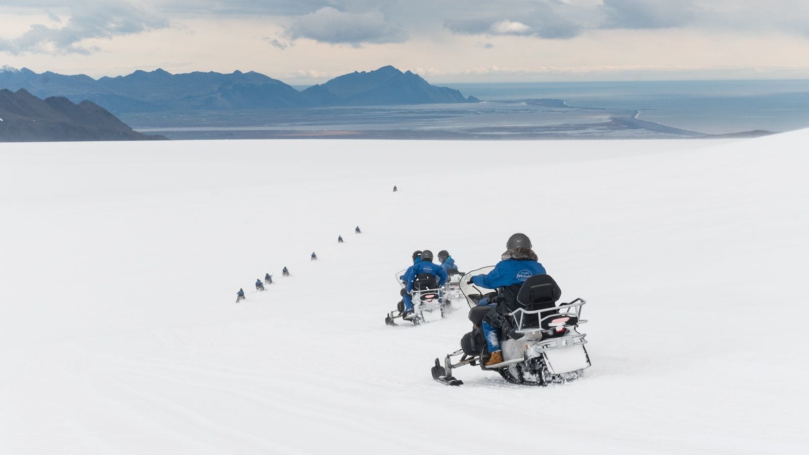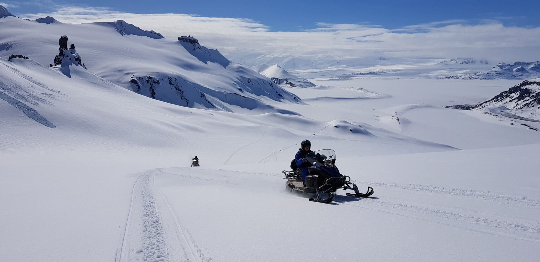 The snowmobile tour is the perfect length of time for first-time riders and individuals looking for a scenic, exploring and experiencing the wilderness, Glacier and the breathtaking views over Vatnajökull Glacier.
