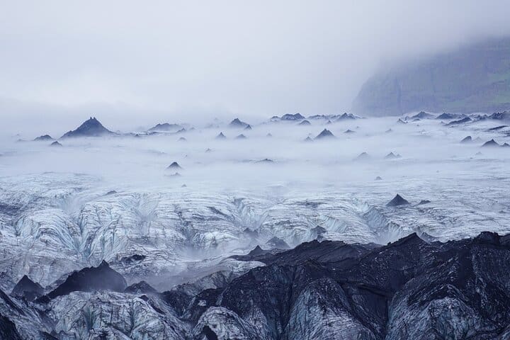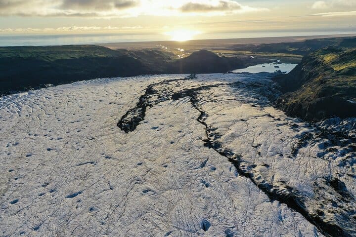 The highlight of the tour will be at Sólheimajökull, an outlet glacier where we'll be guiding you on a glacier hiking and ice climbing experience. Our experienced guide will take you on a journey through the beautiful and otherworldly landscapes of the glacier while teaching you about its geology and history.
