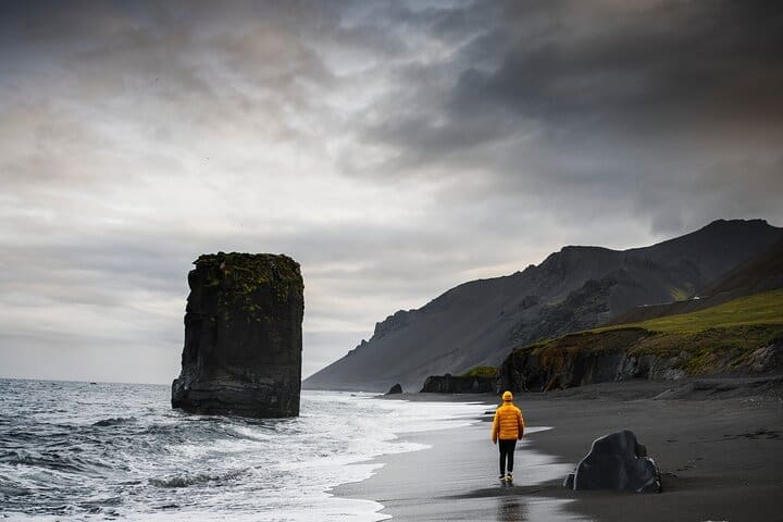 - Reynisfjara Black Sand Beach: Explore the otherworldly beauty of Reynisfjara, famous for its breathtaking black sand beach, majestic basalt columns, and powerful waves that crash onto the shore.