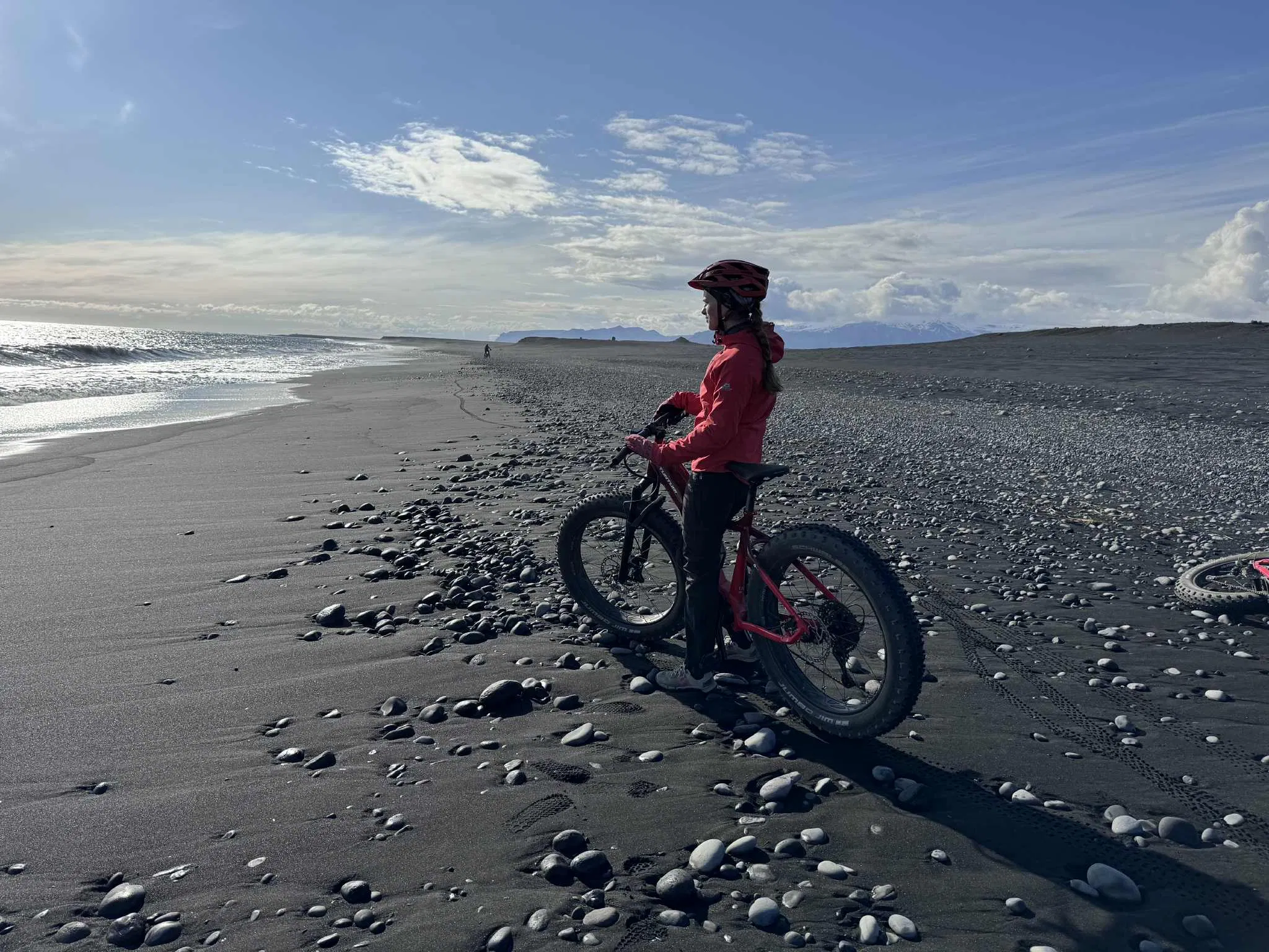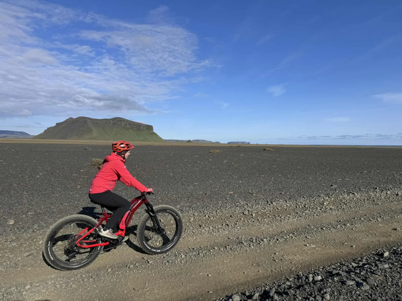 From Reykjavík, we drive towards Mýrdalsjökull glacier, where the volcano Katla is. Set out on a guided electric fat bike adventure exploring the striking black sands of Sólheimasandur. Our modern e-bikes, charged with Iceland’s renewable energy, make this tour both easy and eco-conscious—providing a smooth, emission-free ride for cyclists ages 10 and up.
