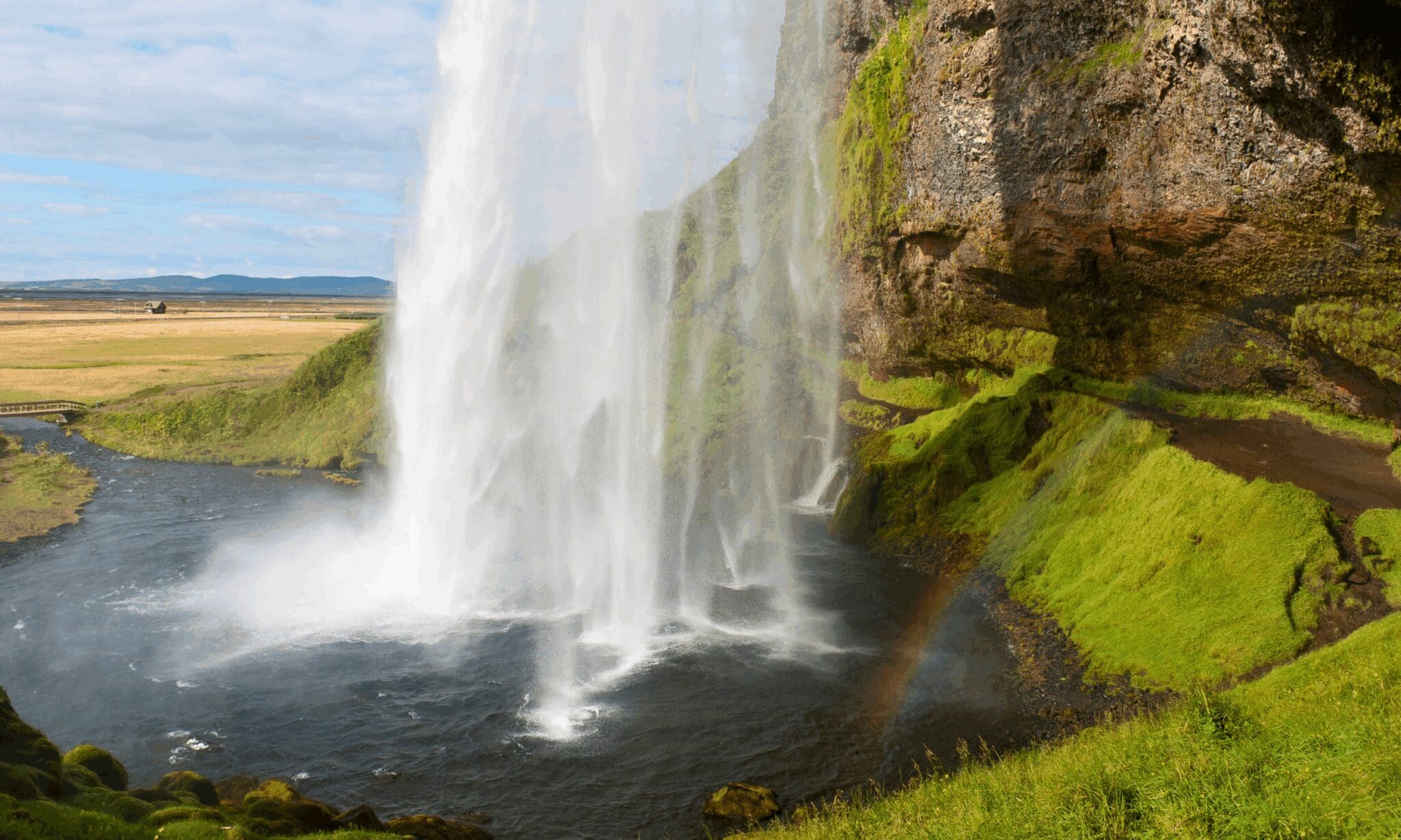 Follow your guide on a scenic walk along a paved path to one of Iceland’s most iconic sights. From the viewing point, capture unforgettable photos with the majestic Seljalandsfoss waterfall as your backdrop. When conditions allow, you can even step behind the curtain of falling water for a truly magical perspective. Watch in wonder as the powerful cascade drops from the cliffs above- an experience sure to leave a lasting memory.