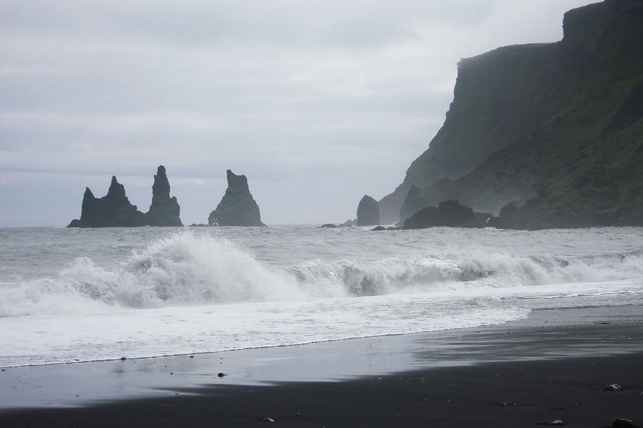 Reynisfjara – Black volcanic sand beaches and spectacular rock formations
