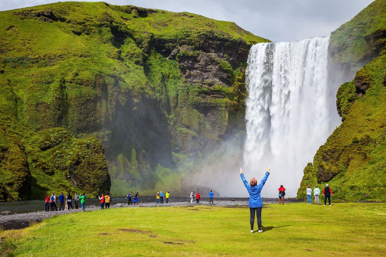We usually stop at Skógafoss for 40-50 minutes. The parking lot is just 1 minute walk from the waterfall. There are restrooms for visitors.