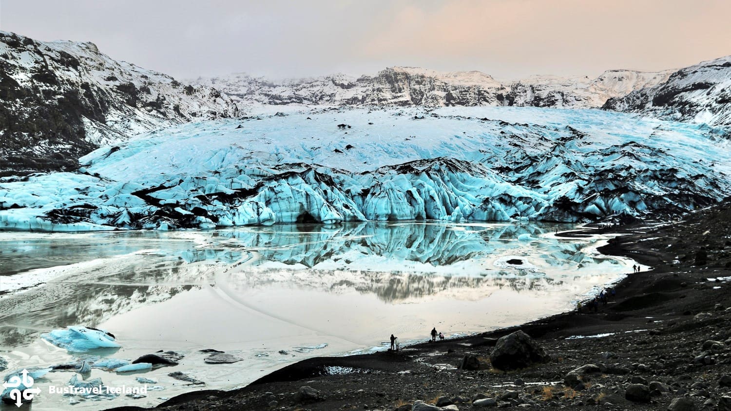 - During the stop at Sólheimajökull glacier you get the chance to explore the glacial landscape with your guide. The walk to the ice takes around 20 min (one way) on uneven terrain. Sturdy shoes and wind- and waterproof outer layers are highly recommended for the walk.