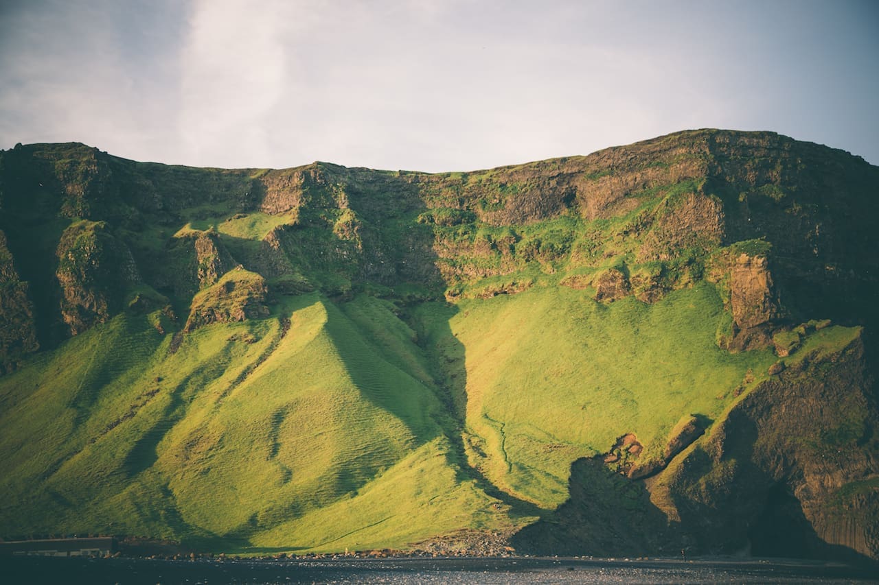 We’ll visit the hidden waterfall Gljúfrabúi (Canyon Dweller Waterfall), the famous Seljalandsfoss Waterfall you can walk behind and the magnificent Skógafoss in front of which Jon Snow and Daenerys shared a passionate kiss in the last season of Game of Thrones. These are amongst the numerous characterful waterfalls that we will see from the road on our drive along the old sea cliffs. If it’s very windy you’ll even see a few of them flow upward. The South Coast of Iceland has everything you want to see in Iceland: waterfalls, glaciers, beach, volcanoes, beautiful mountains & farms.
