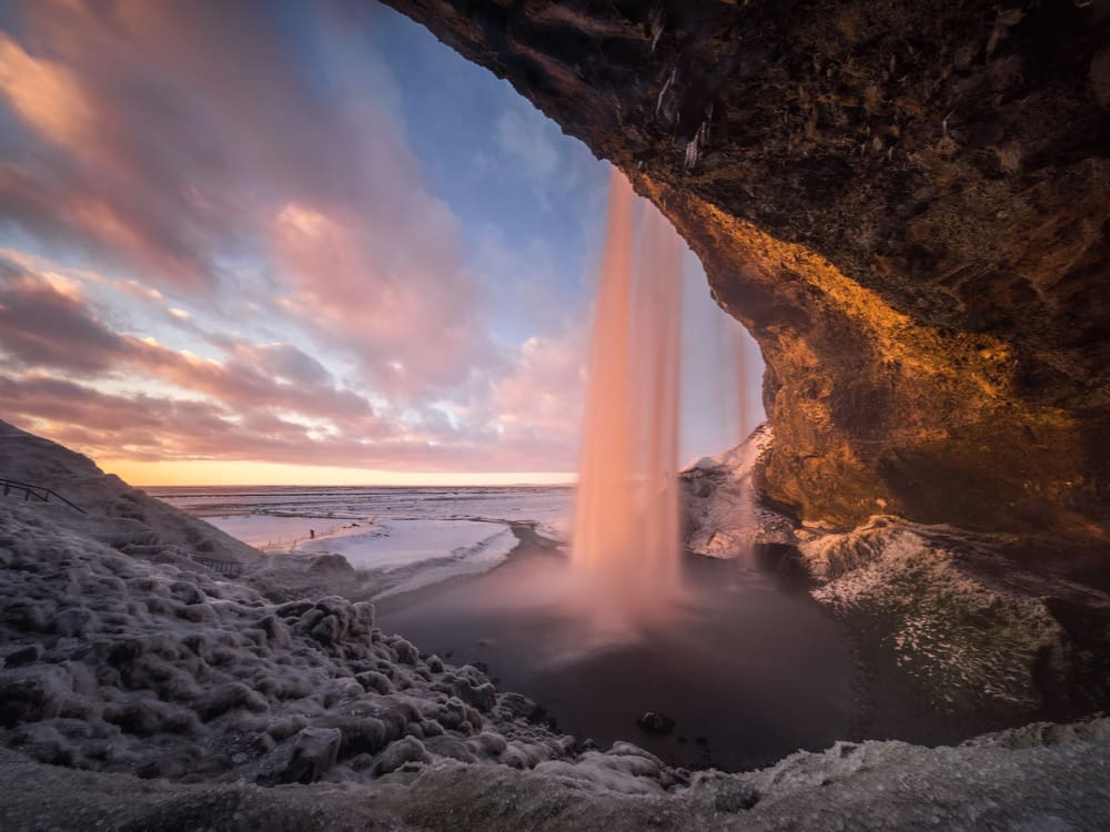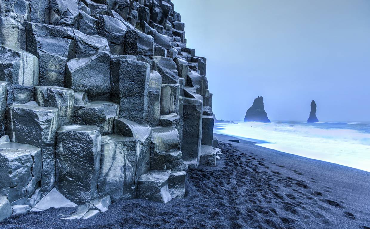 You’ll see the villages and farms of the southern part of Iceland before we arrive at the Eyjafjöll mountain range. In clear weather you can see volcanos and glaciers that have erupted 9 times in the last 50 years, the latest of which was the infamous Eyjafjallajökull eruption of 2010 stranding millions of travellers all around the world. Reynisfjara beach, with its basalt column cliffs, is a particular favourite of the south. The crashing waves of the open Atlantic break on the black sandy beach of Reynisfjara which is incredibly picturesque with its mountainous backdrop. Remember to be extra careful at this powerful beach as the waves are unpredictable and powerful.