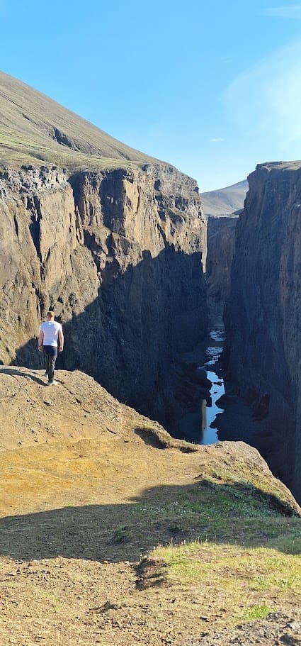After marveling at the stunning beauty of Stuðlagil Canyon, we journey further into the highlands to Hafrahvammagljúfur Canyon, where we stop to witness the grandeur of this 200-meter-deep gorge. This is Iceland's deepest canyon, also known as Dimmugljúfur, or "The Dark Canyon," because sunlight barely reaches its deepest point.