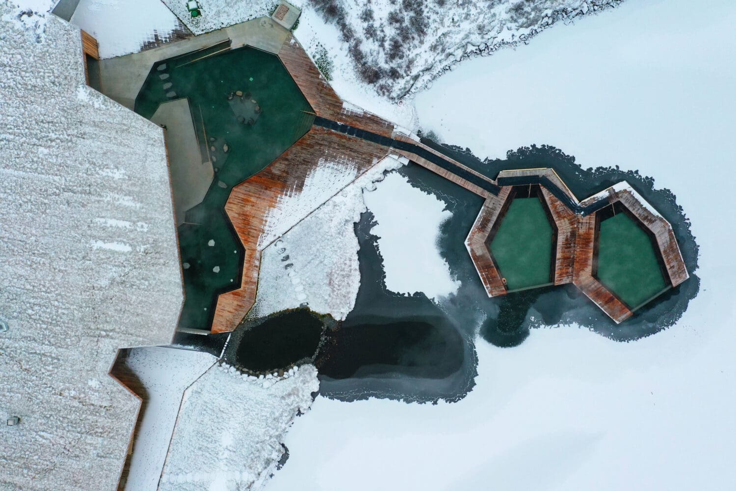 At Vök Baths you will find, floating geothermal pools with infinity view, two on shore hot pools, a sauna, cold water spray tunnel, tea bar, an in-water pool bar, and the on-site restaurant, Vök Bistro.