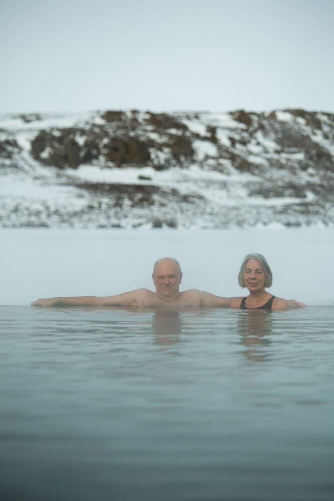 We will return from this outdoor marvel and discover Vök Baths, a haven designed for winter's embrace. Submerge yourself in the warm embrace of natural geothermal waters, a sanctuary of tranquility. Imagine sipping your favorite drink as steam dances around you, tales of the land whispered in the air.