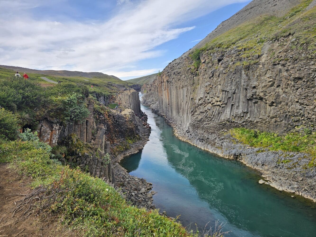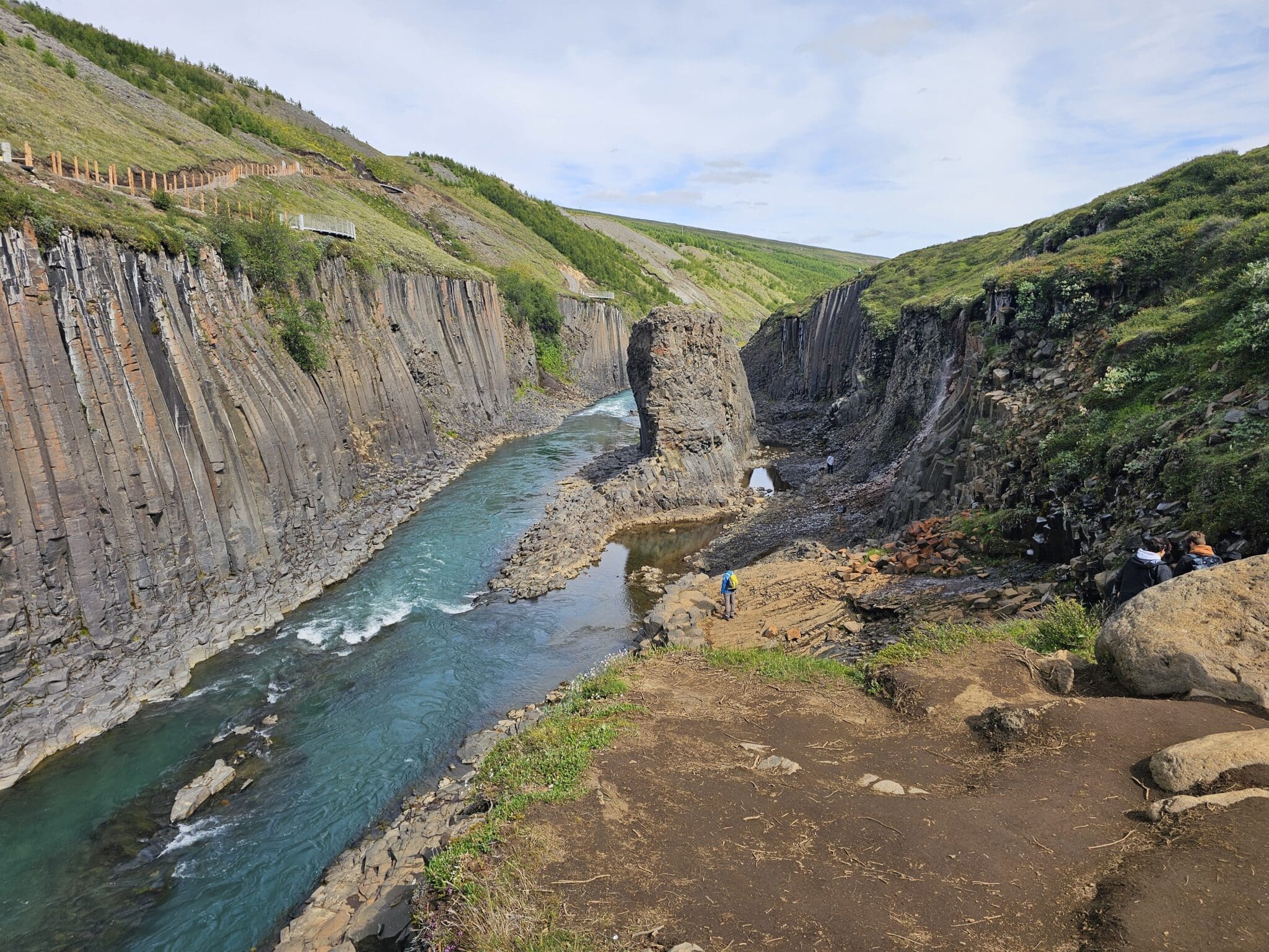 - From there, we head further into Jökuldalur, where we take a hike to Stuðlagil canyon. The hike is 2,5 km each way on an easy footpath reaching the place where you can climb down into the canyon. The climb down requires some agility, but the canyon can also be enjoyed from above.