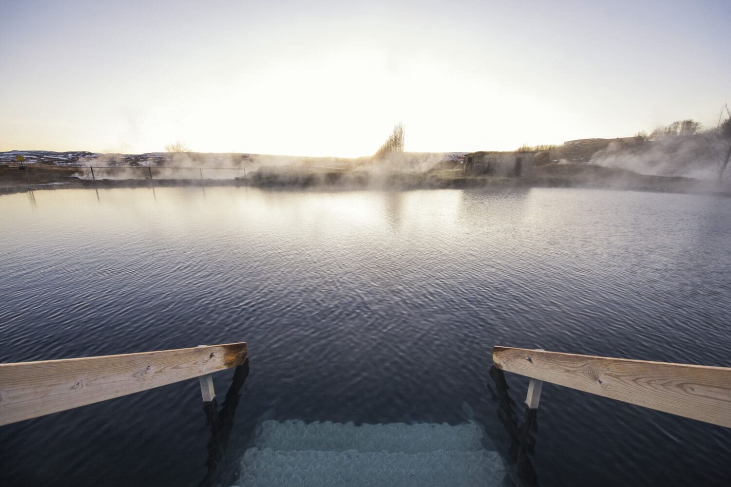 Secret Lagoon natural hot springs are located in the geothermal area near the small village of Fludir. Founded in 1891, it is the oldest thermal pool in Iceland.