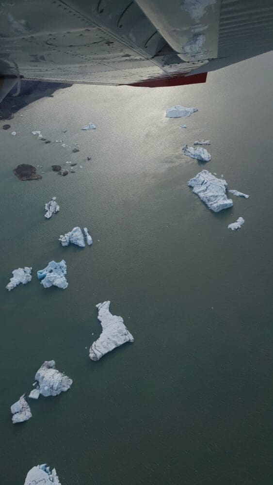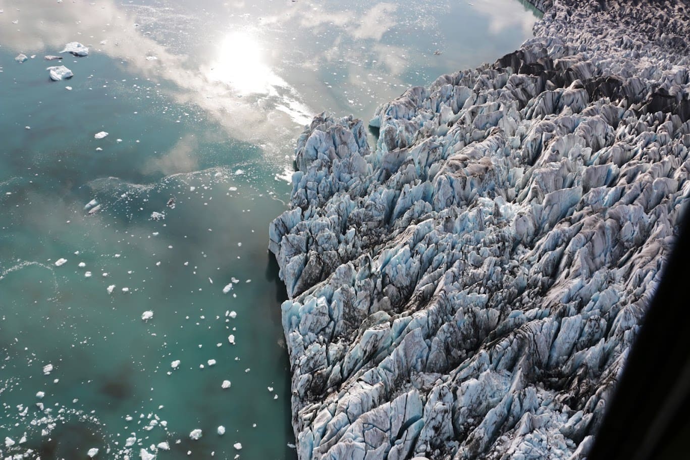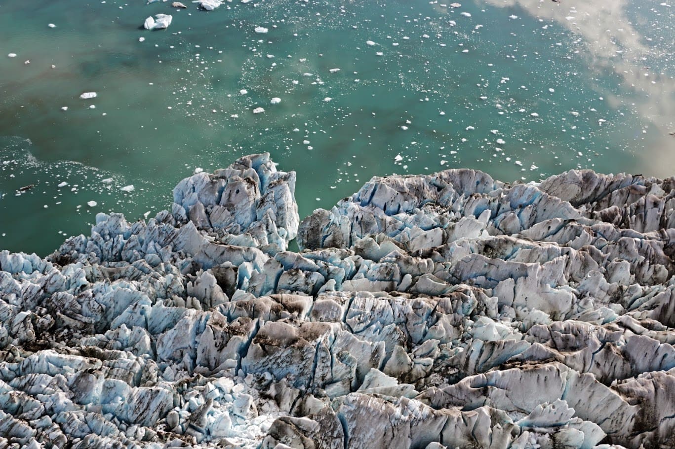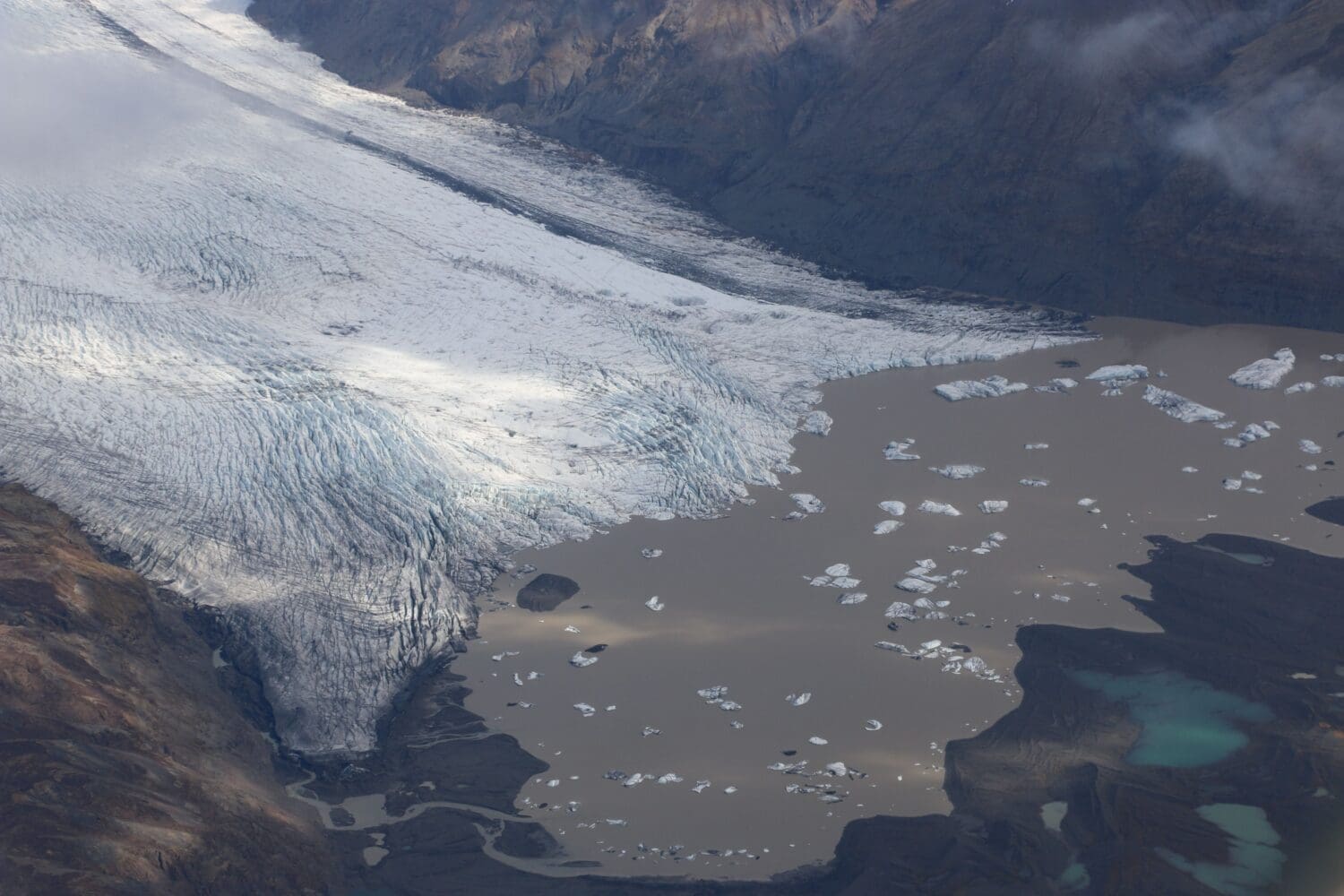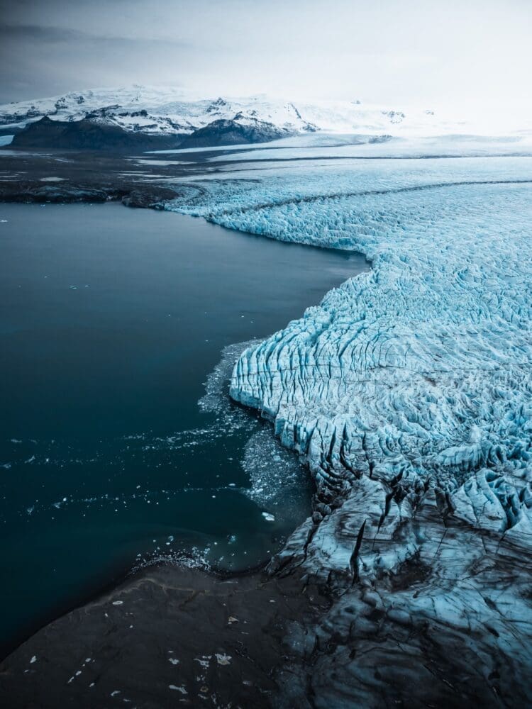 - Look down at glacier lagoons, where icebergs drift across bright waters before making their way toward the sea.