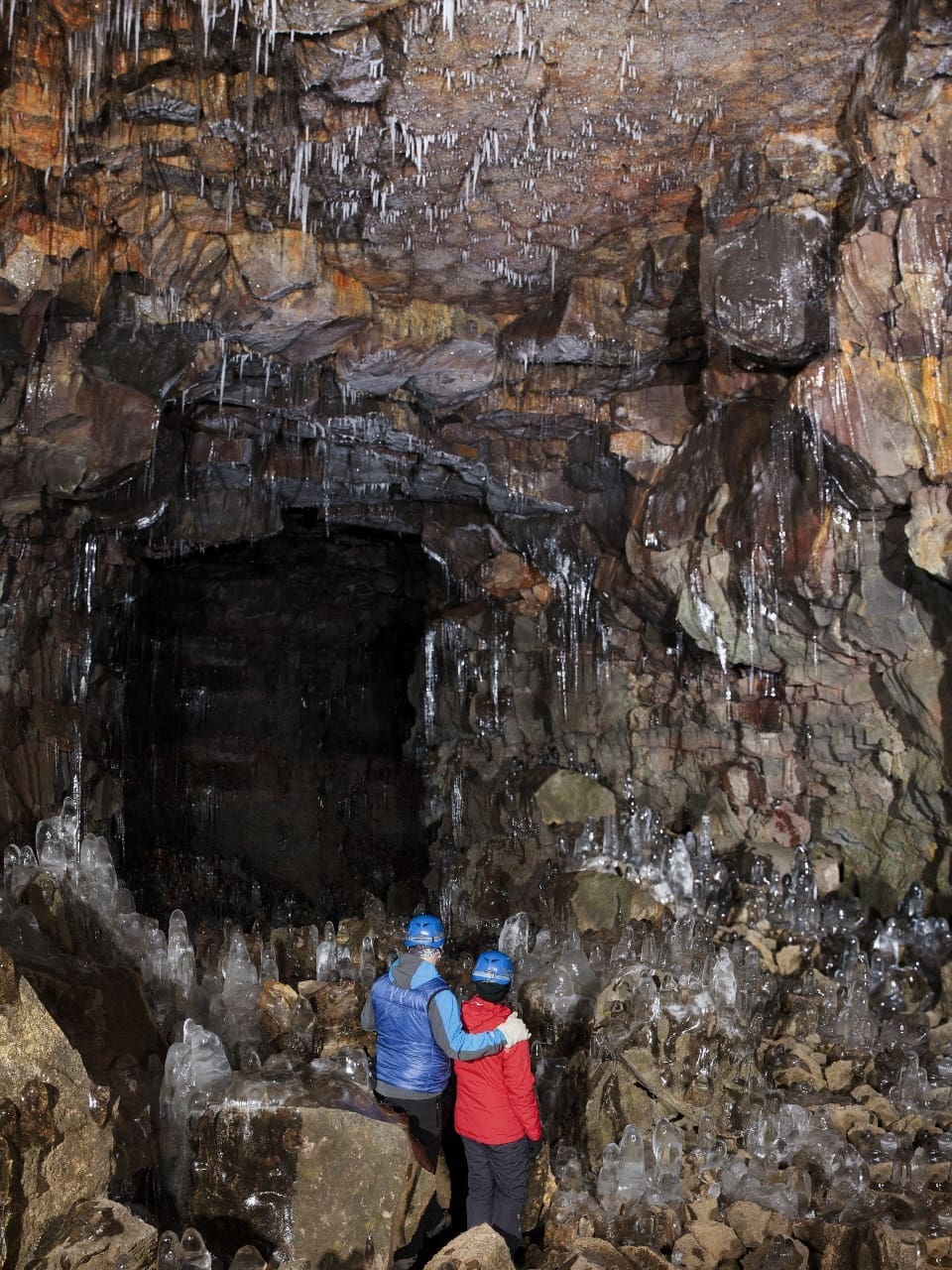 The Lava Falls Adventure Tour takes you off the beaten path and into the depths of The Lava Tunnel (also know to Icelanders as Raufarholshellir) to explore the source of the cave, the magnificent Lava Falls. The Adventure tour requires good fitness and balance. The tour traverses difficult terrain, including big rocks and boulders. It takes on average 3-4 hours to complete, relying on an experienced guide and head torches to navigate through this underground wonder. At the end of the cave you will experience breathtaking scenery as you will witness the origin on the lava flow that created the cave, which includes amazing lava falls rarely seen in the world.