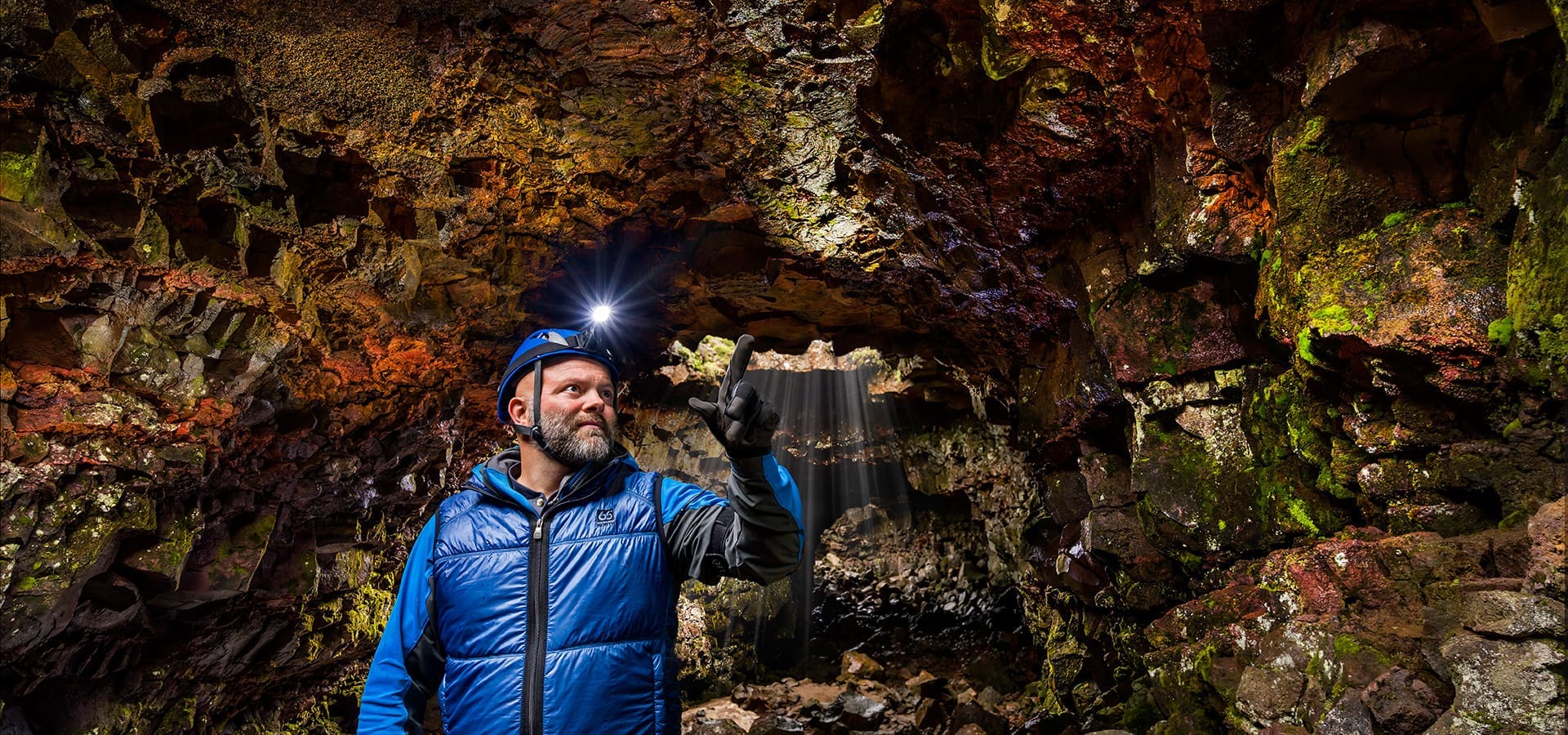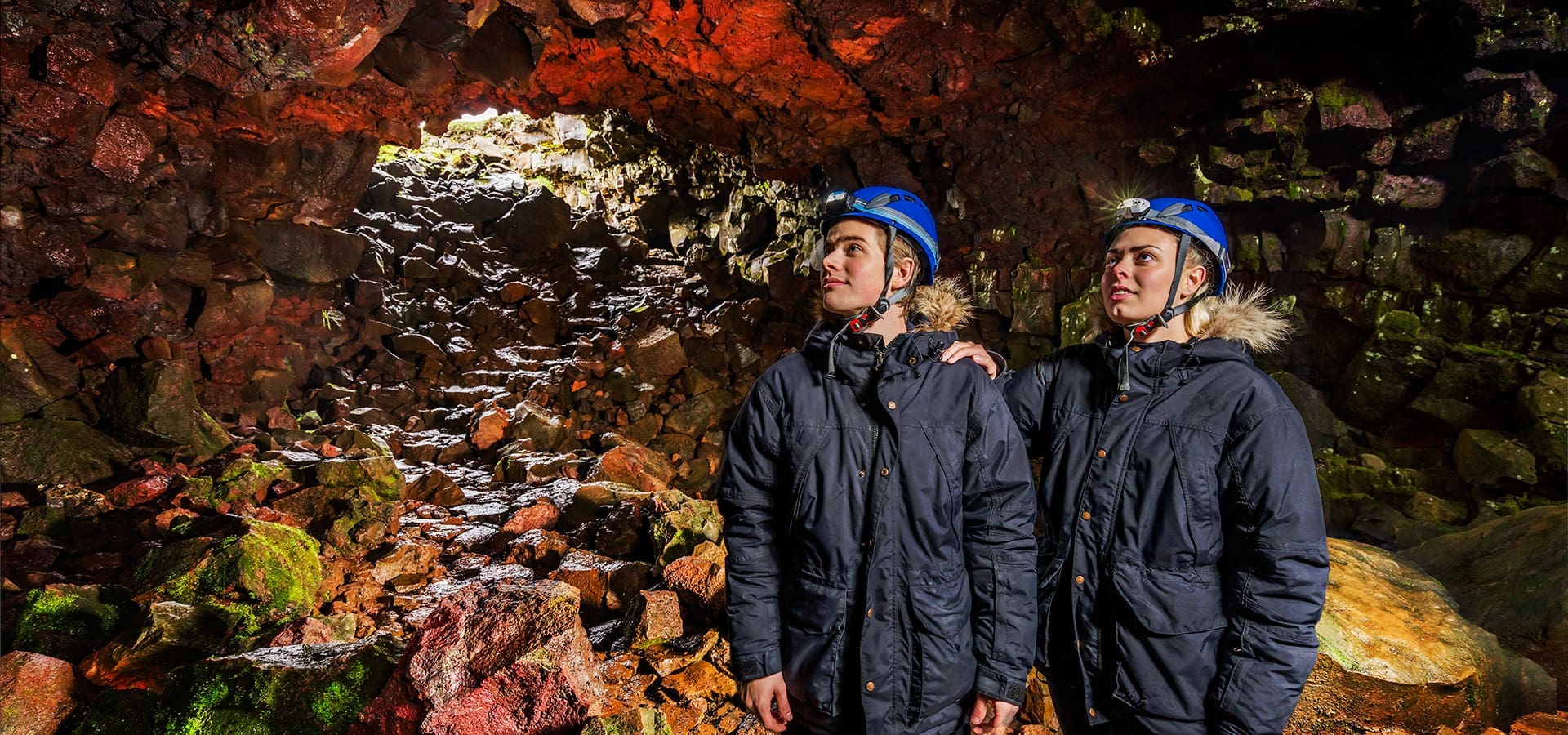 Experience the natural phenomenon of Raufarhólshellir lava tunnels as you explore it in an easy and enjoyable manner. The 1360 metre (4500 ft) tunnel was formed during the Leitahraun eruption, which occurred about 5200 years ago and is a unique Icelandic natural attraction. A guide will lead you through Raufarhólshellir’s colourful landscape where the formation of the tunnel is highlighted with beautiful lighting. Every winter, spectacular ice sculptures form inside the entrance of the cave, making the experience even more breathtaking. The roughest part of the lava is easily accessible with footbridges and paths so you can explore the cave in a comfortable way. Equipment such as helmets and lights is provided at the location but it is highly recommended that guests wear warm overalls and shoes with ankle support once inside.