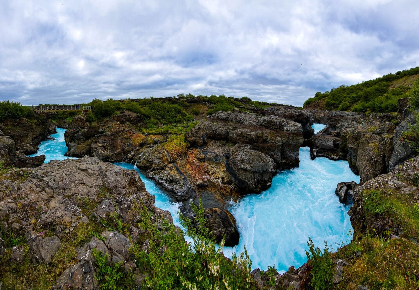 - Barnafoss ("Children’s Falls") – A powerful, churning waterfall with a tragic legend. According to folklore, two children fell to their deaths here, giving the falls their haunting name. The surrounding landscape, with its natural stone arch and turbulent waters, evokes both beauty and mystery.