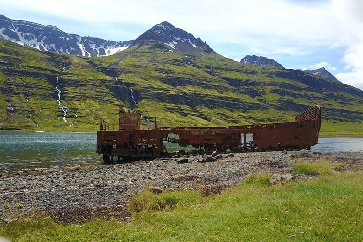 We’ll also pass the historic site of Asknes, where the remains of one of the largest whaling stations in the world still stand – a silent reminder of Iceland’s industrial past.