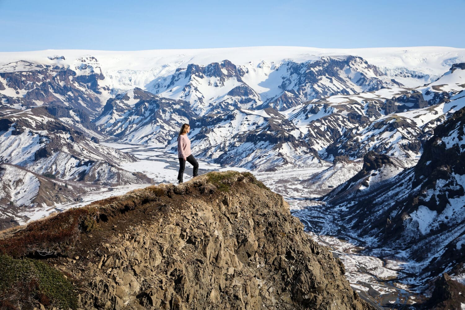 Cross rivers in a private 4×4 vehicle into one of Iceland’s most epic places, The Valley of Thor. Situated underneath two massive glaciers and an active volcano, Thórsmörk will showcase these dramatic features with a hike up to Valahnúkur, one of the most breathtaking viewpoints in the country. Lunch will be enjoyed at Langidalur Hut at the foot of the mountain to feel the true vibes of the Icelandic summer. Stops will also be made into the valley’s deep canyons and hidden caves, a secret waterfall, and the edge of the massive Gígjökull glacier.