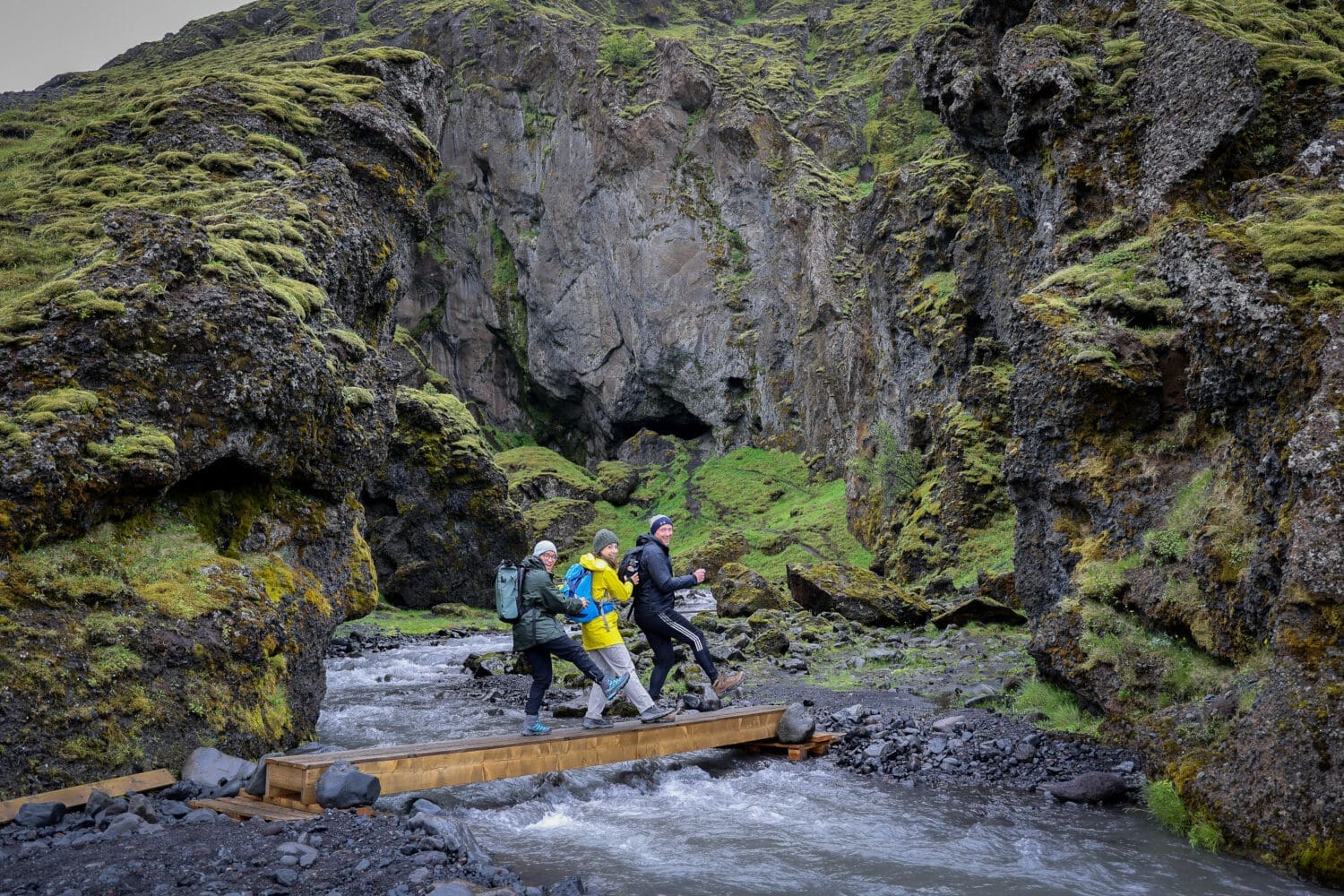 As we make our way further into Thorsmork Valley, we will explore Stakkholtsgjá Canyon, a stunning gorge with towering green cliffs and a sparkling river running through it. Like something out of Jurassic Park, this place is guaranteed to make you feel small.