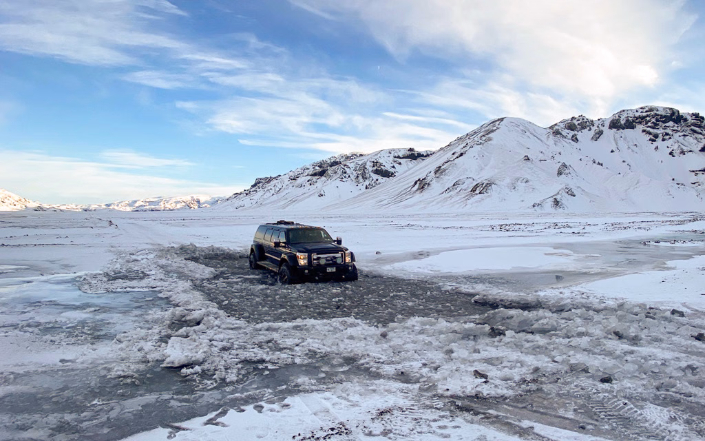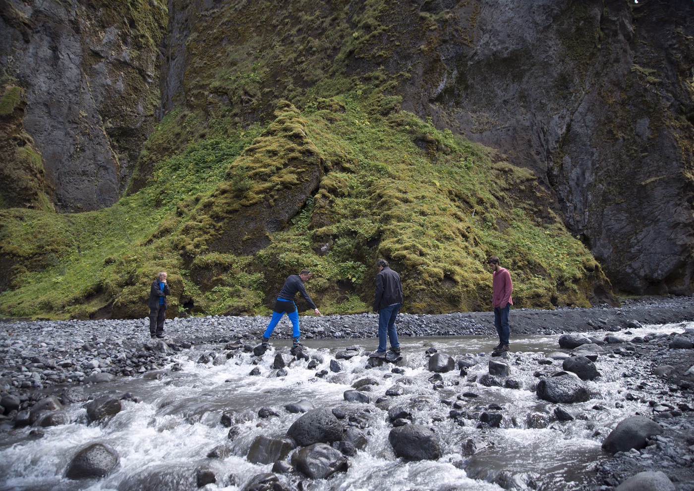 Next, we head toward Þórsmörk, Iceland’s highland paradise, with a visit to Gígjökull, a glacier tongue that flows from Eyjafjallajökull. Gígjökull dramatically changed after the 2010 eruption, which melted ice and flooded the valley. Here, you can see the marks of nature’s powerful forces.