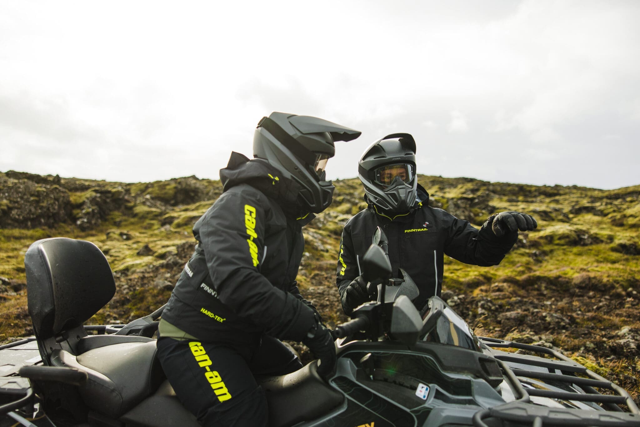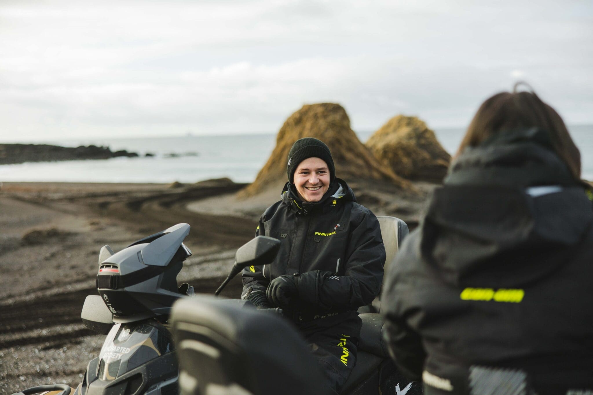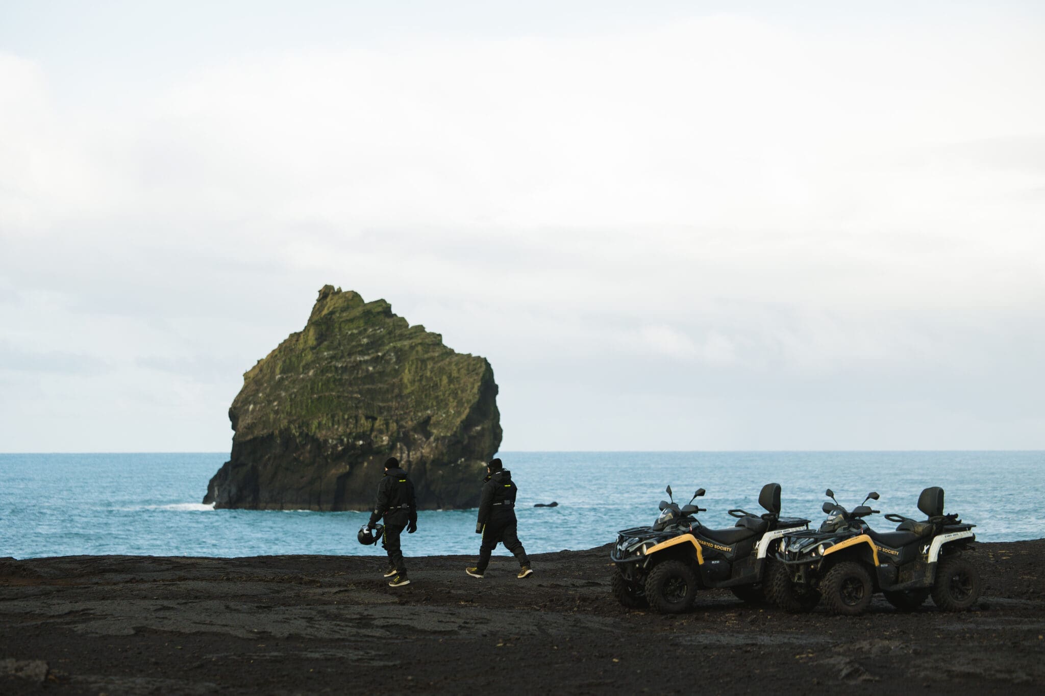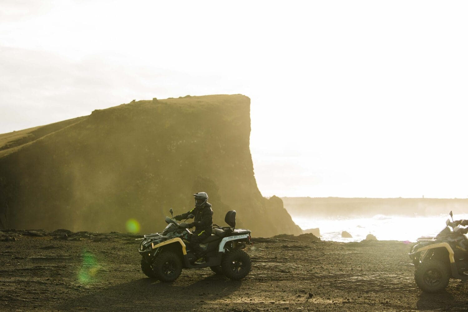 We ride through the Reykjanes peninsula where we see the Reykjanes tip, the Reykjanes lighthouse and parts of the Mid-Atlantic Ridge that lies between the continents of North America and Europe. We then drive along the beach of Sandvík, a black sandy beach where Clint Eastwood shot his film Flags of Our Fathers. We will stop at the old lighthouse, get some hot chocolate and savour Icelandic homemade twisted doughnuts (kleinur). There is no age limit for passengers, but a driver’s licence is required for the ATV driver.
