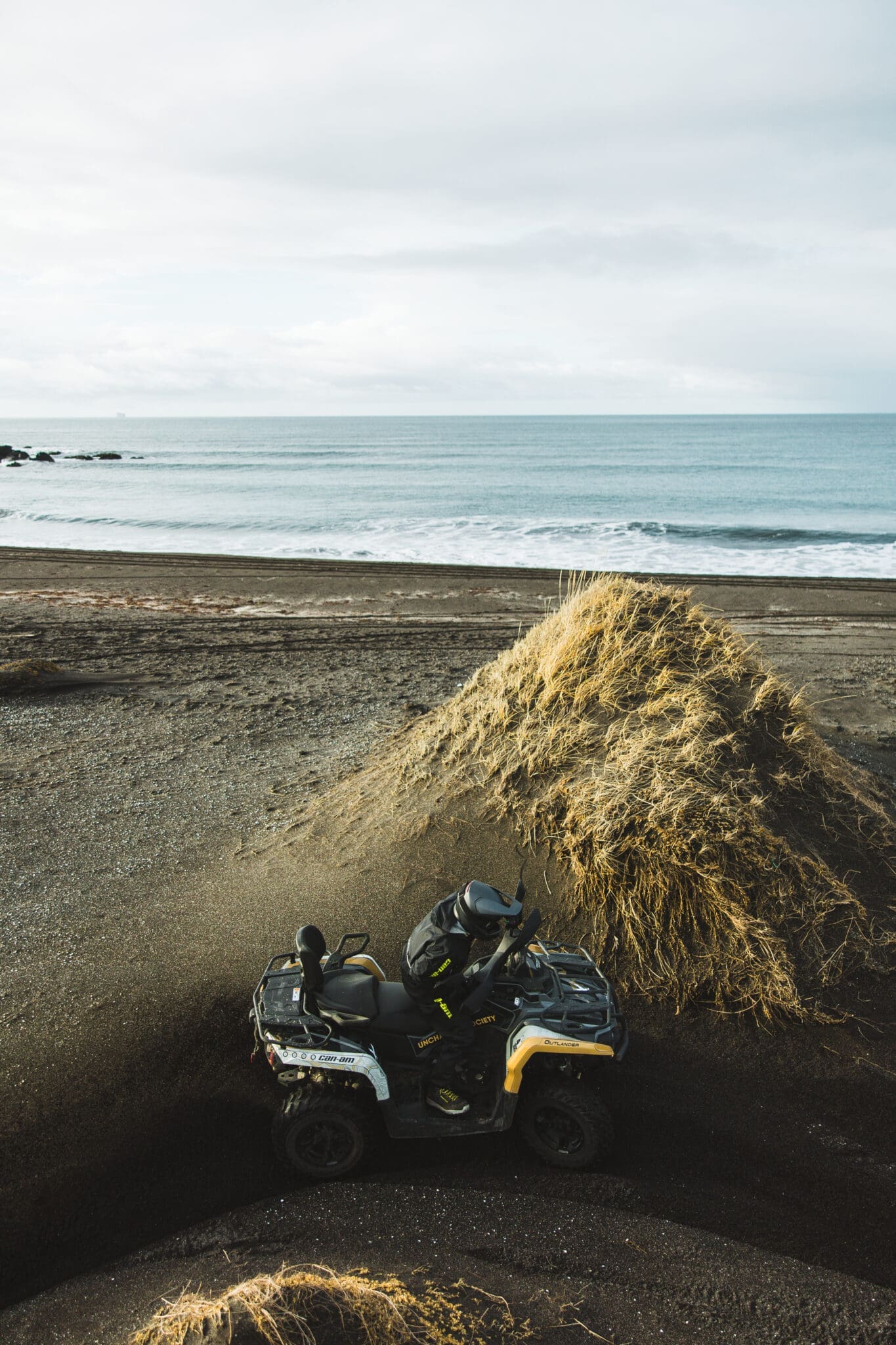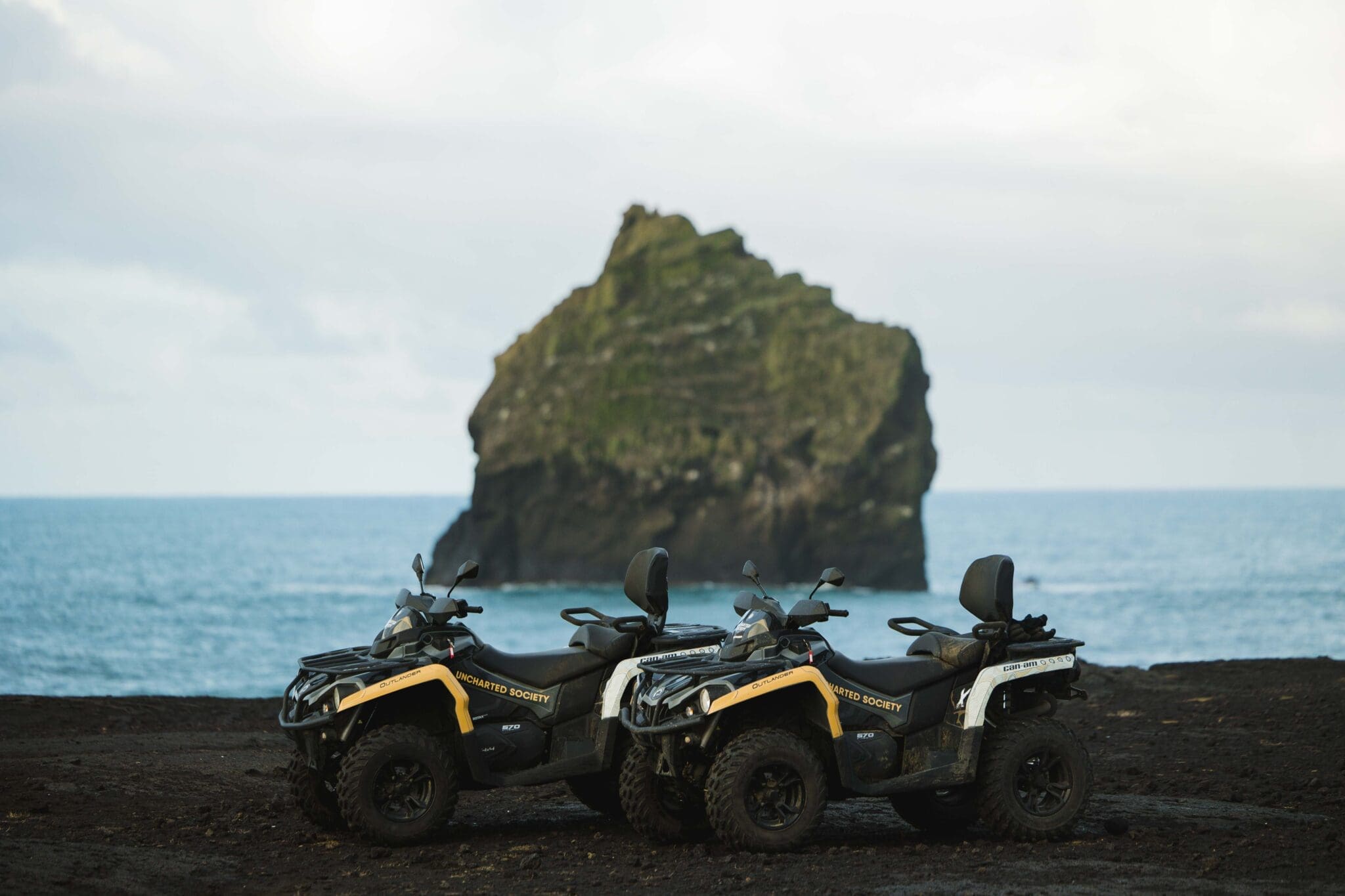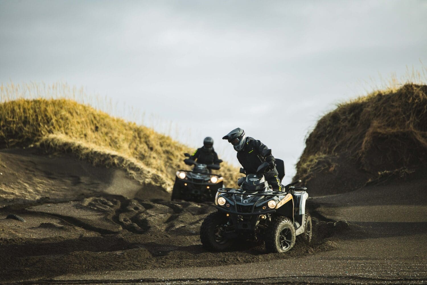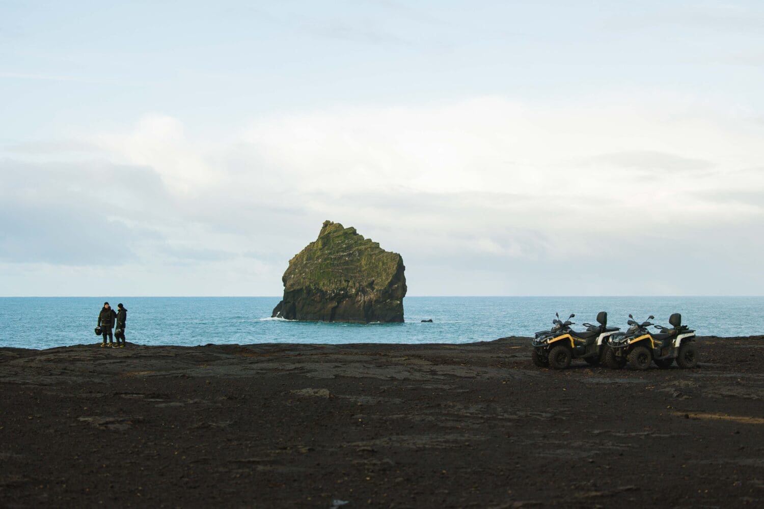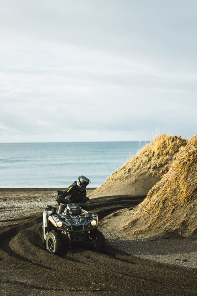 We ride through the Reykjanes peninsula where we see the Reykjanes tip, the Reykjanes lighthouse and parts of the Mid-Atlantic Ridge that lies between the continents of North America and Europe. We then drive along the beach of Sandvík, a black sandy beach where Clint Eastwood shot his film Flags of Our Fathers. We will stop at the old lighthouse, get some hot chocolate and savour Icelandic homemade twisted doughnuts (kleinur). There is no age limit for passengers, but a driver’s licence is required for the ATV driver.