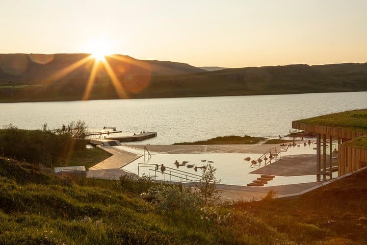 Vök Baths harnesses the geothermal power of the region to create a unique bathing experience with amazing views of the rest of the lake and the surrounding area. Fully immerse yourself in Iceland’s unique and untouched landscape and become one with nature at the country’s first series of geothermal floating pools. An Icelandic hot spring destination like no other, the hot water is so pure, that it is the only certified drinkable hot spring water in Iceland.