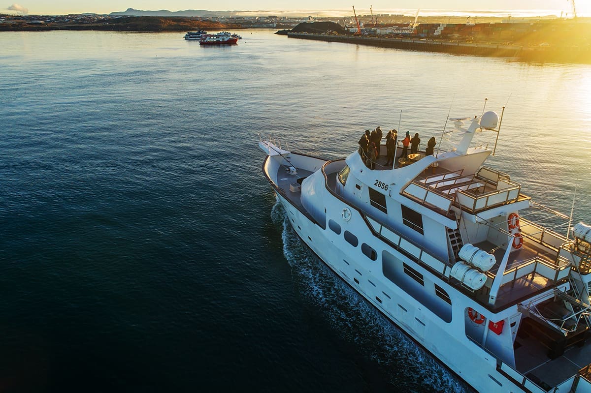 The ship sets sails from Reykjavík’s Old Harbour and during your journey, you’ll sail among the small islands in the Faxaflói Bay, as well as along the coast of Reykjavík, providing you with a fantastic view of the city as you search for the wildlife in t