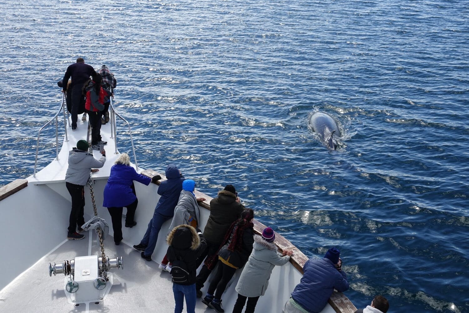 The ship sets sails from Reykjavík’s Old Harbour and during your journey, you’ll sail among the small islands in the Faxaflói Bay, as well as along the coast of Reykjavík, providing you with a fantastic view of the city as you search for the wildlife in the water. The most common sights are minke and humpback whales, dolphins, and porpoises. However, there is always a chance to spot a few orcas (also known as killer whales) as well as a wealth of other species. The professional team onboard is very experienced in spotting whales and is dedicated to making sure their passengers leave with a smile!