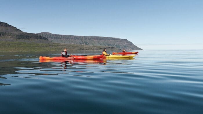 This three-day sea kayak adventure is truly a unique experience. Explore Ísafjarðardjúp bay in all its glory, searching for marine mammals and elusive sea birds. Enjoy dinner on a remote beach and sleep on a peninsula surrounded by breathtaking wildlife, beautiful sunsets, colourful flora and rich history. Ísafjarðardjúp bay is truly a special place in many ways. The bay offers the chance not only to see, but to paddle amongst the diverse wildlife that calls Iceland its home. Millions of sea birds such as Puffins, Eider Ducks, Guillemots and Oystercatchers flock to these shores to breed, as well as the opportunistic Eagles and Falcons which are looking for prey. Whales, dolphins and seals are often seen in the bay, and the serenity of the kayak is by far the best way to seamlessly immerse yourself into the environment. Our guides will keep you entertained with many facts, stories and pieces of local gossip. This trip is suitable for beginner kayakers. If you are in good physical shape and have a thirst for adventure, then you will do very well on this trip.